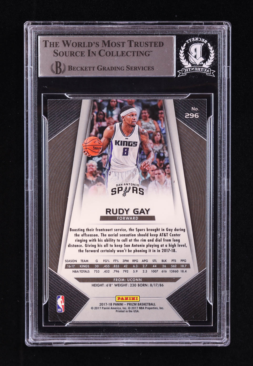 Rudy Gay Signed 2017-18 Panini Prizm #296 (BGS)