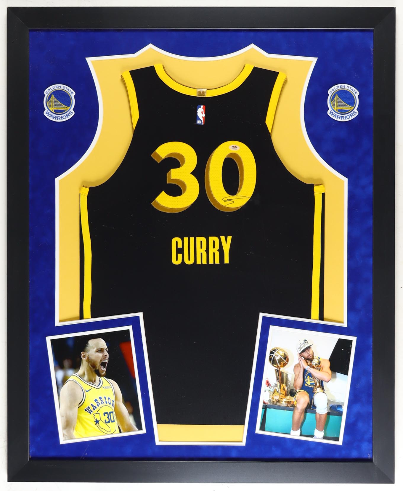 Stephen Curry Signed Warriors Custom Framed Jersey Display (PSA)