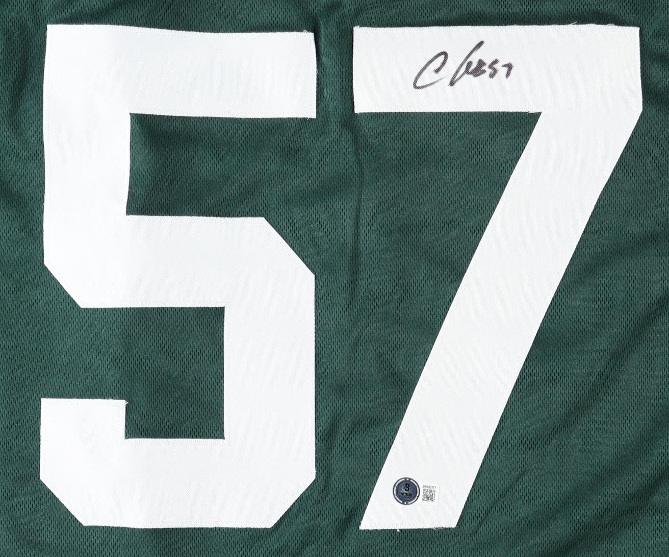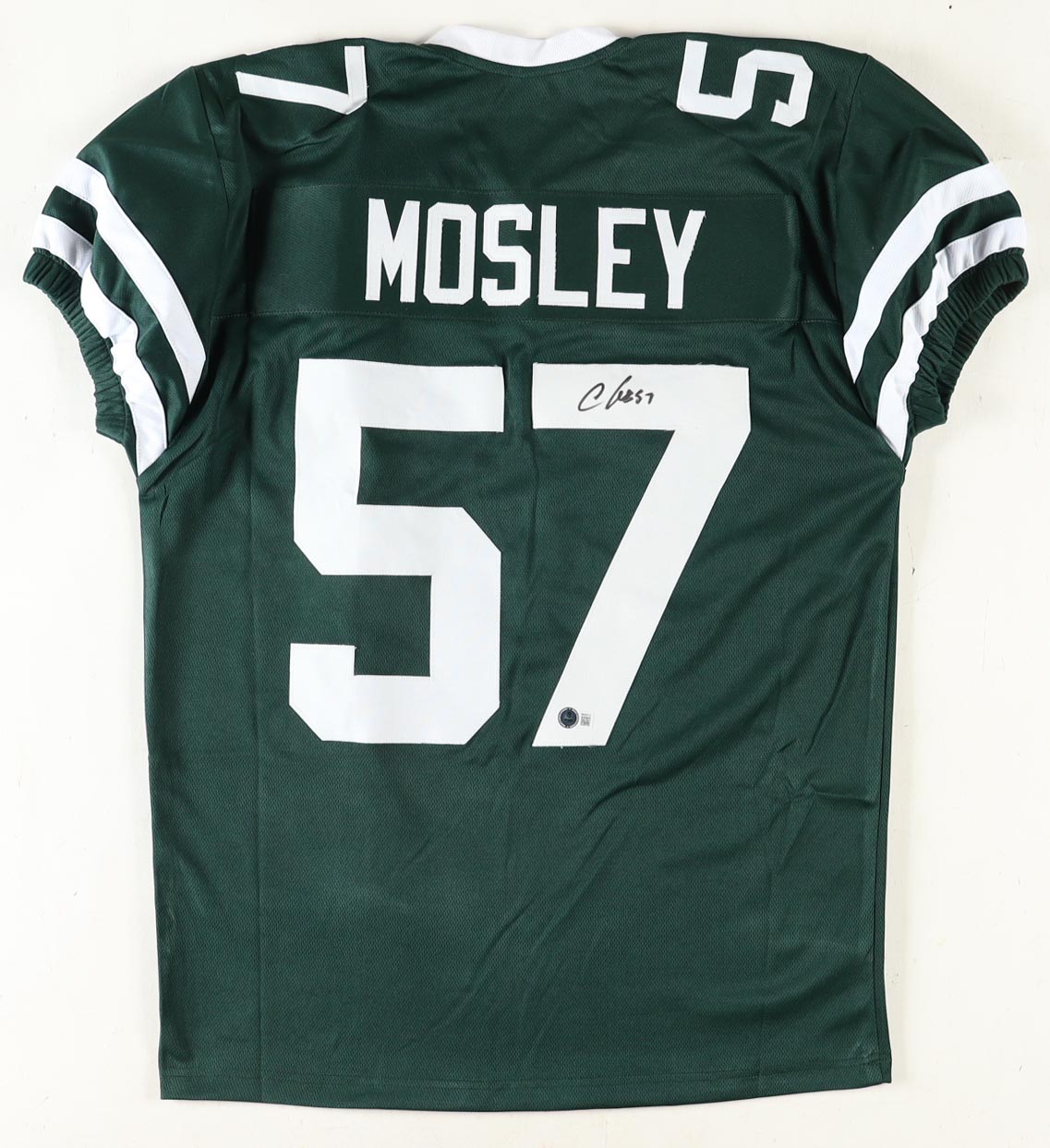 Custom jersey with everything sewn on, size XL. Hand-signed by C. J. Mosley.