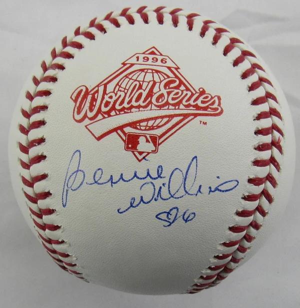 Rawlings Official 1996 World Series baseball has been hand-signed by Bernie Williams (New York Yankees).