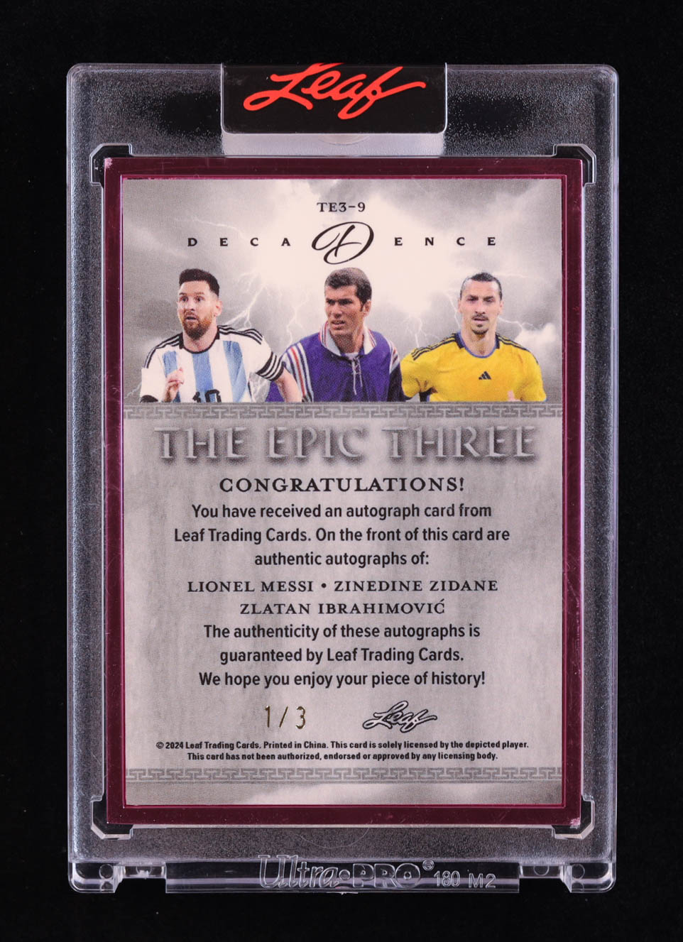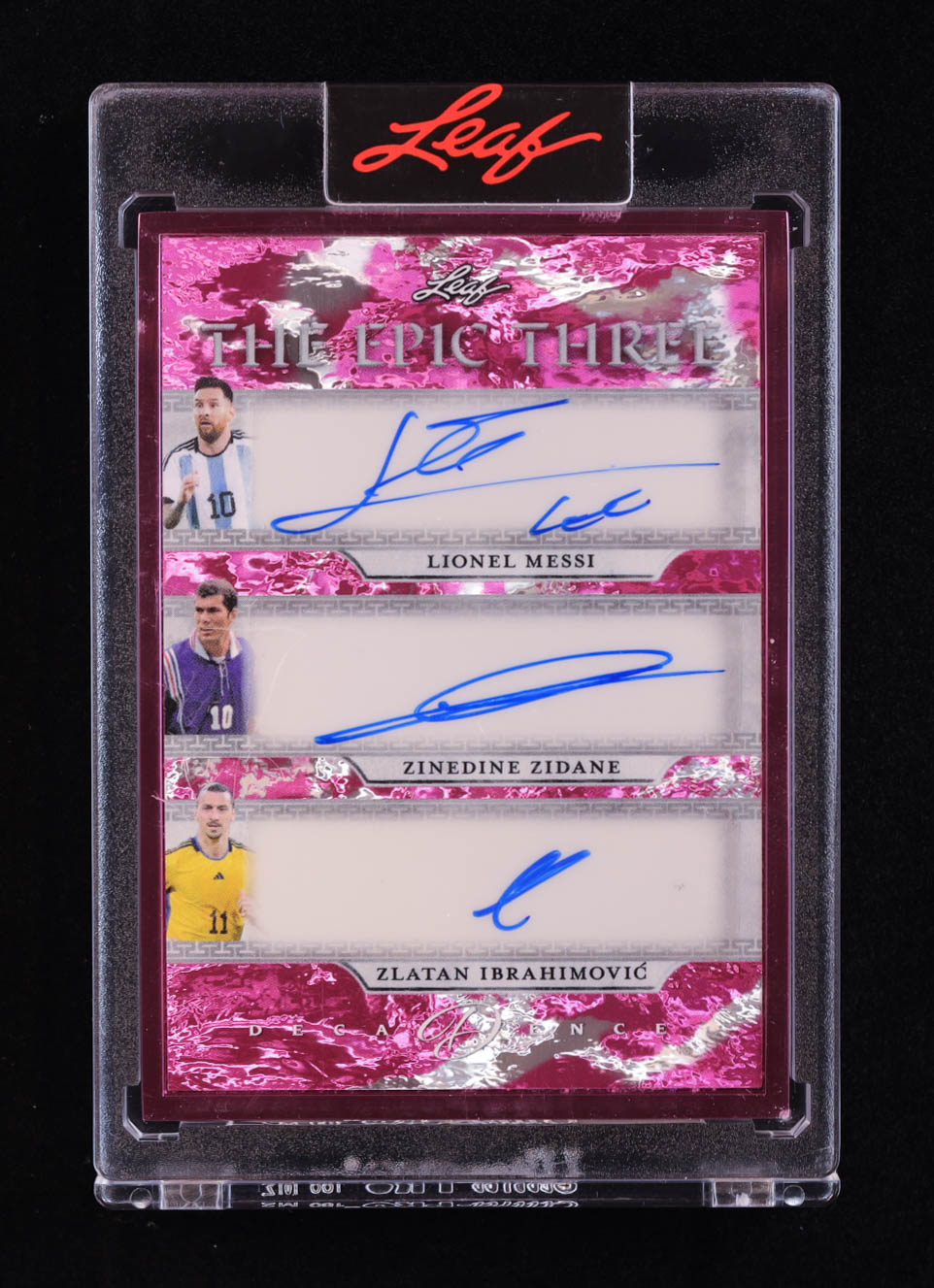 Lionel Messi / Zinedine Zidane / Zlatan Ibrahimovic 2024 Leaf Decadence The Epic Three Pink #TE39 #1/3