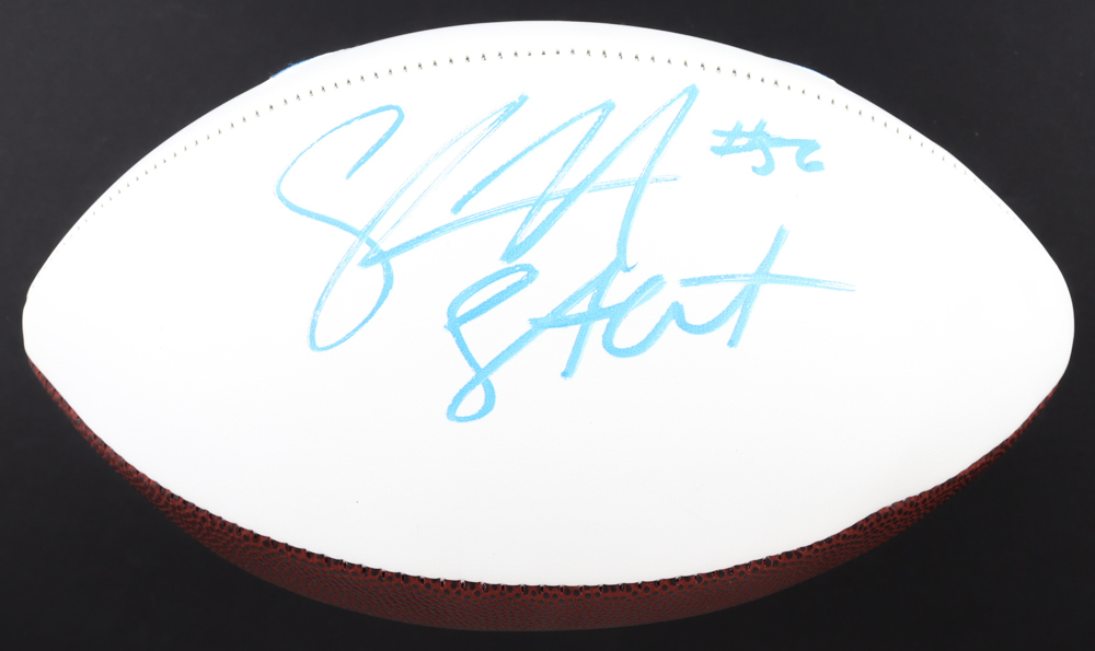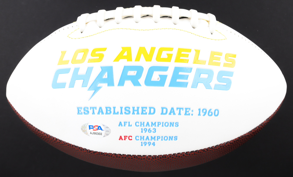 San Diego Chargers logo football. Hand-signed by Shawne Merriman.