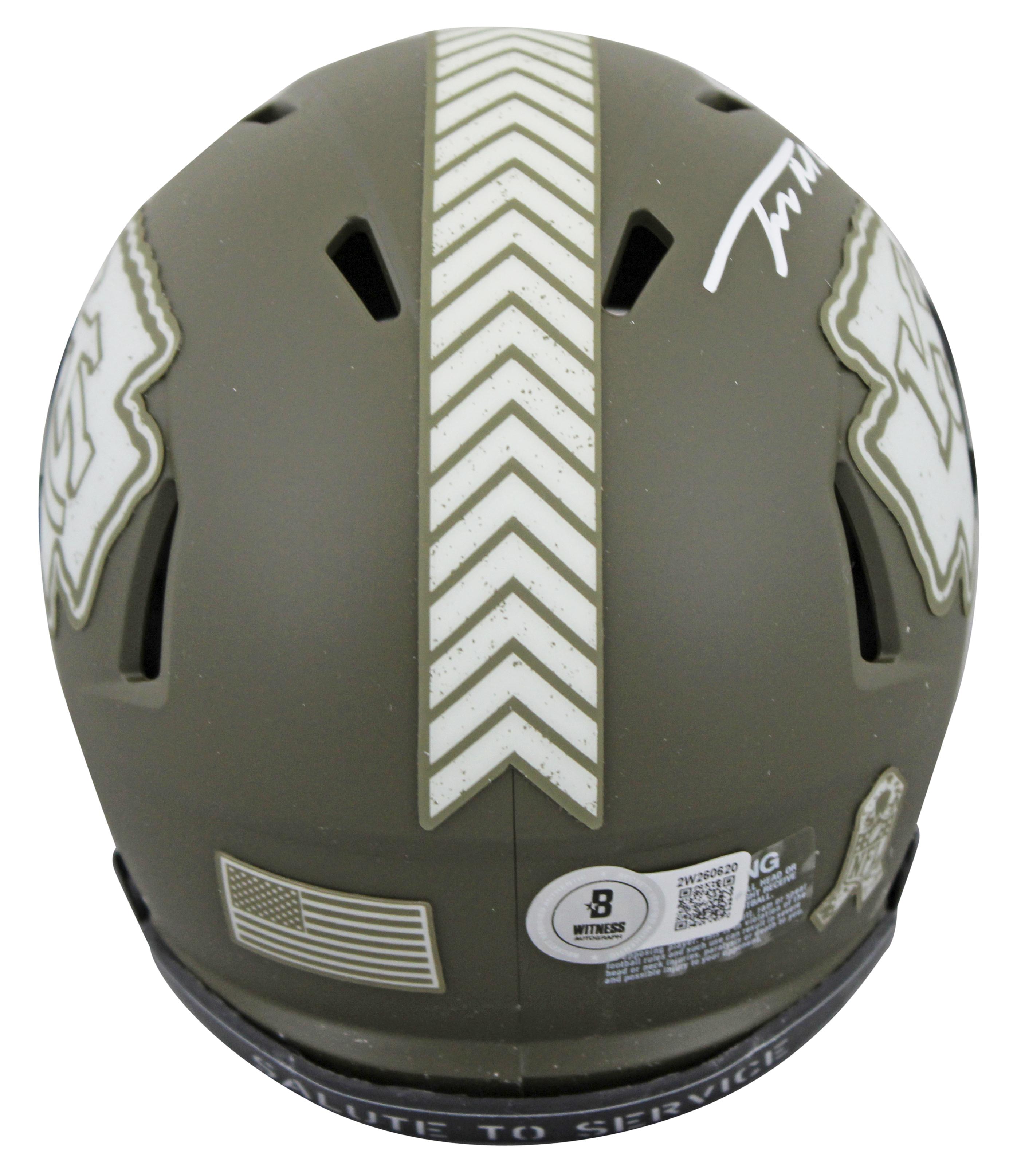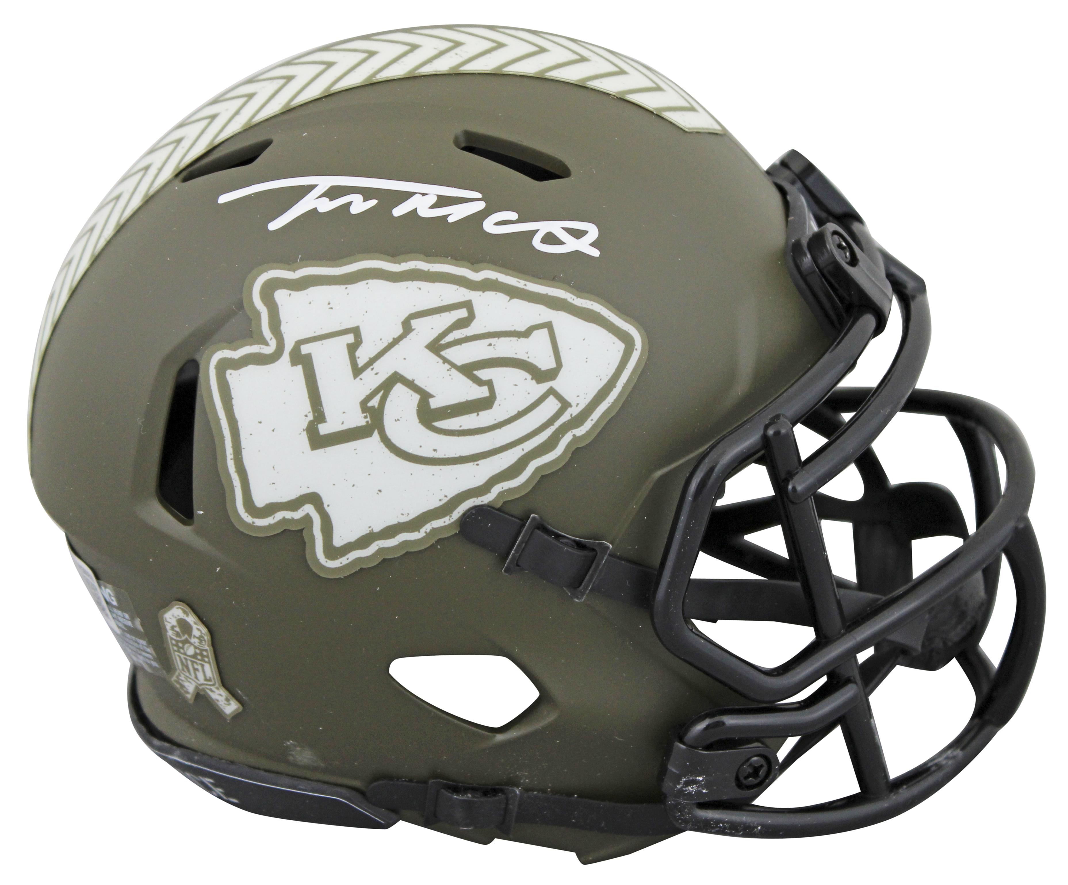 Riddell Kansas City Chiefs salute to service alternate speed mini helmet has been hand-signed by Trent McDuffie. The display case is included as shown.