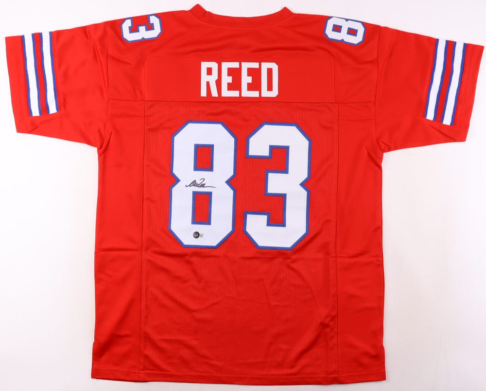 Custom jersey. Everything is sewn on, size XL. Hand-signed by Andre Reed (HOF). Please note, the signature has bled.