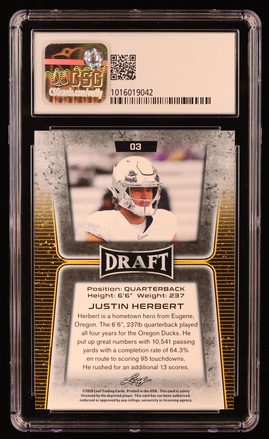Justin Herbert 2020 Leaf Draft #3 RC (CSG 10)