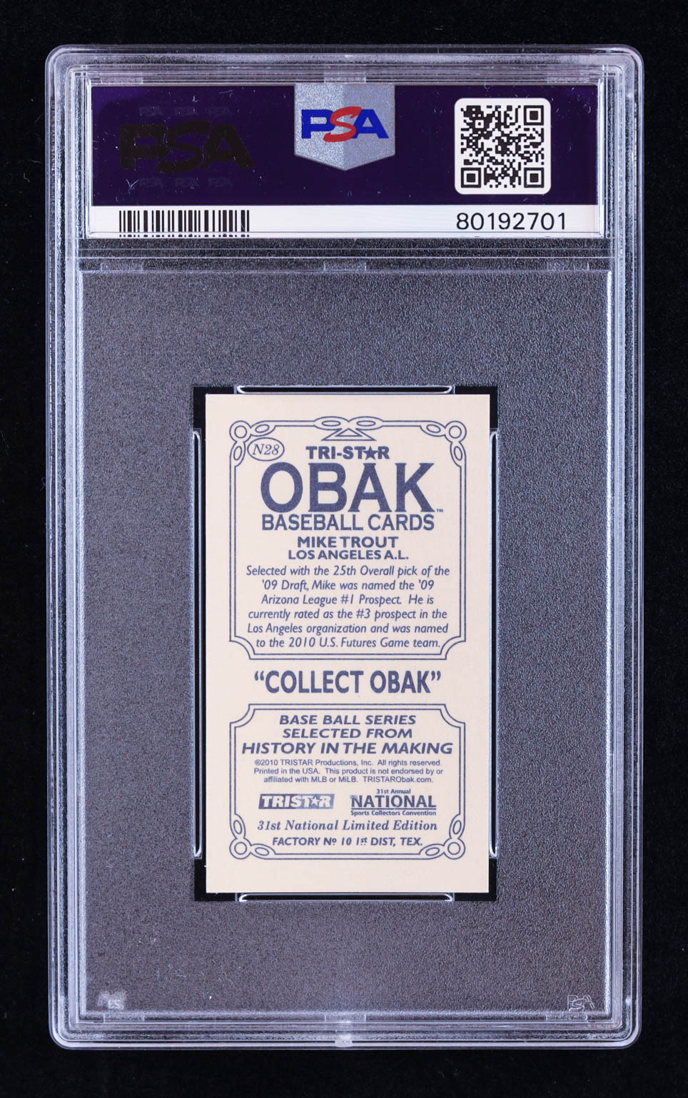 Mike Trout 2010 TRISTAR Obak National Convention VIP Mini #N28 RC (PSA 9)