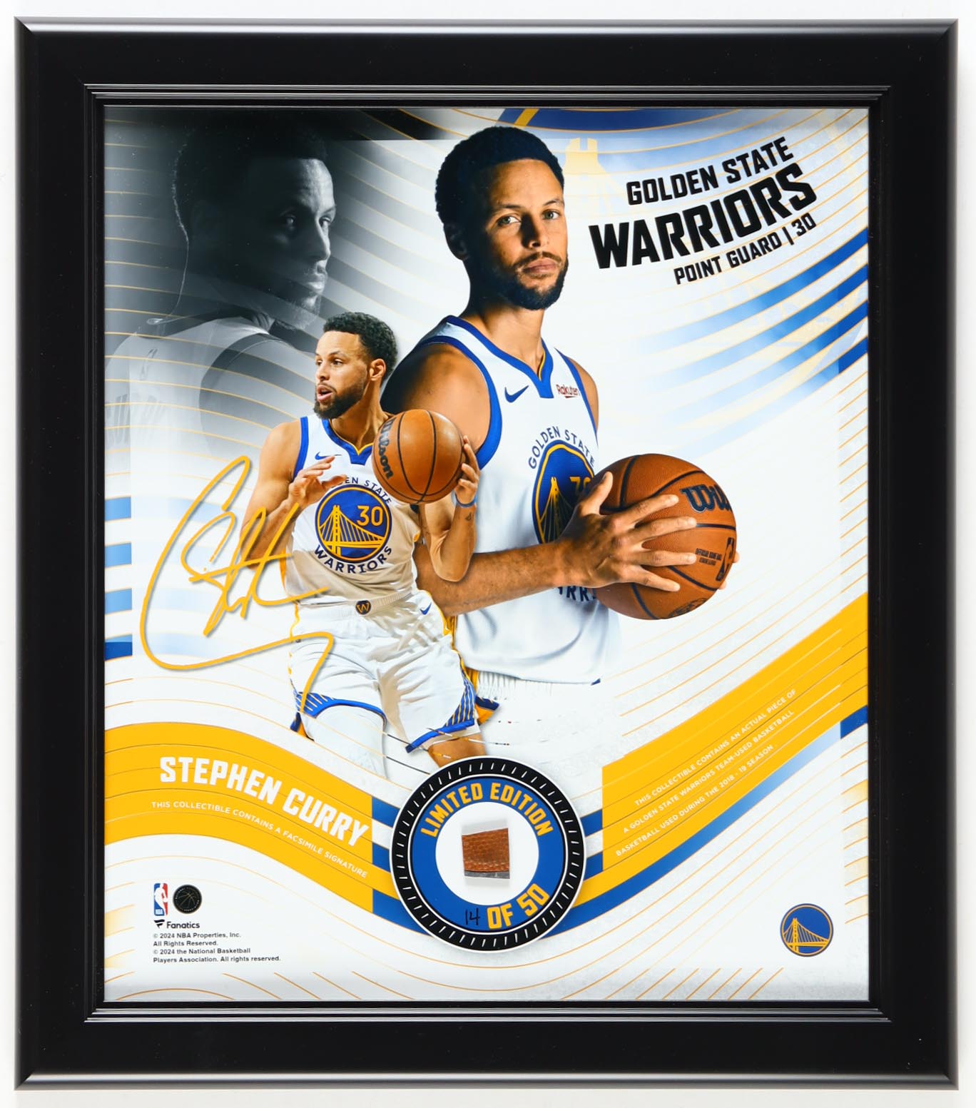 Stephen Curry LE Warriors Custom Framed Game-Used Basketball Piece Collage (Fanatics)