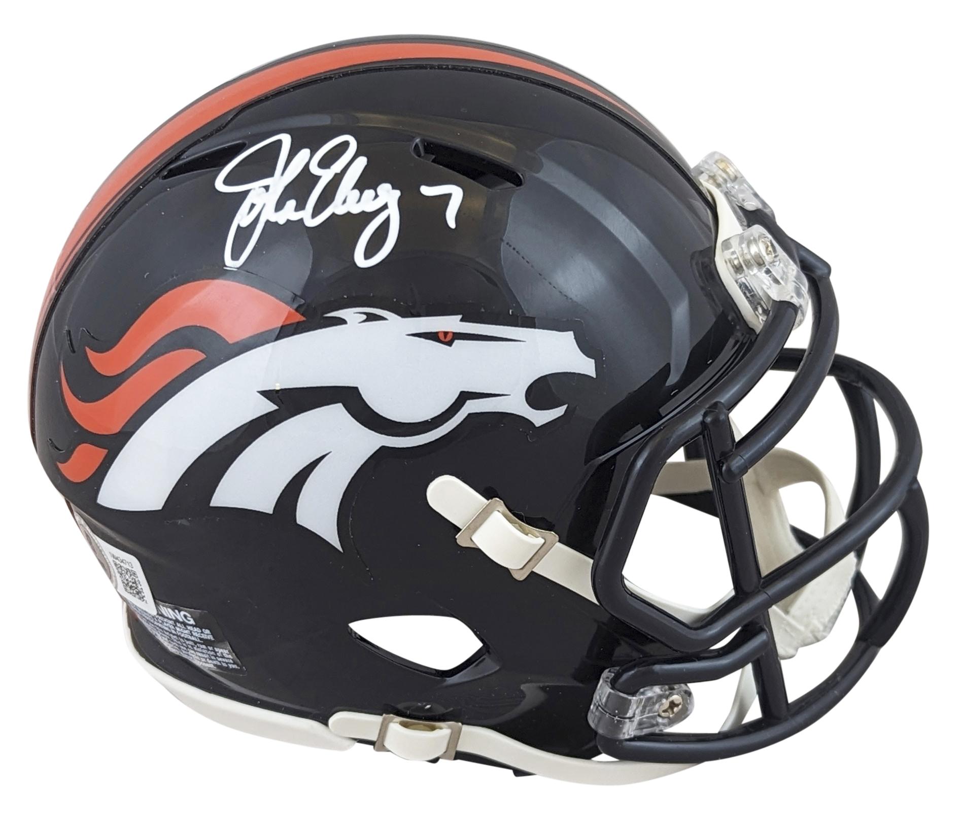 Riddell Denver Broncos speed mini helmet. Hand-signed by John Elway (HOF).