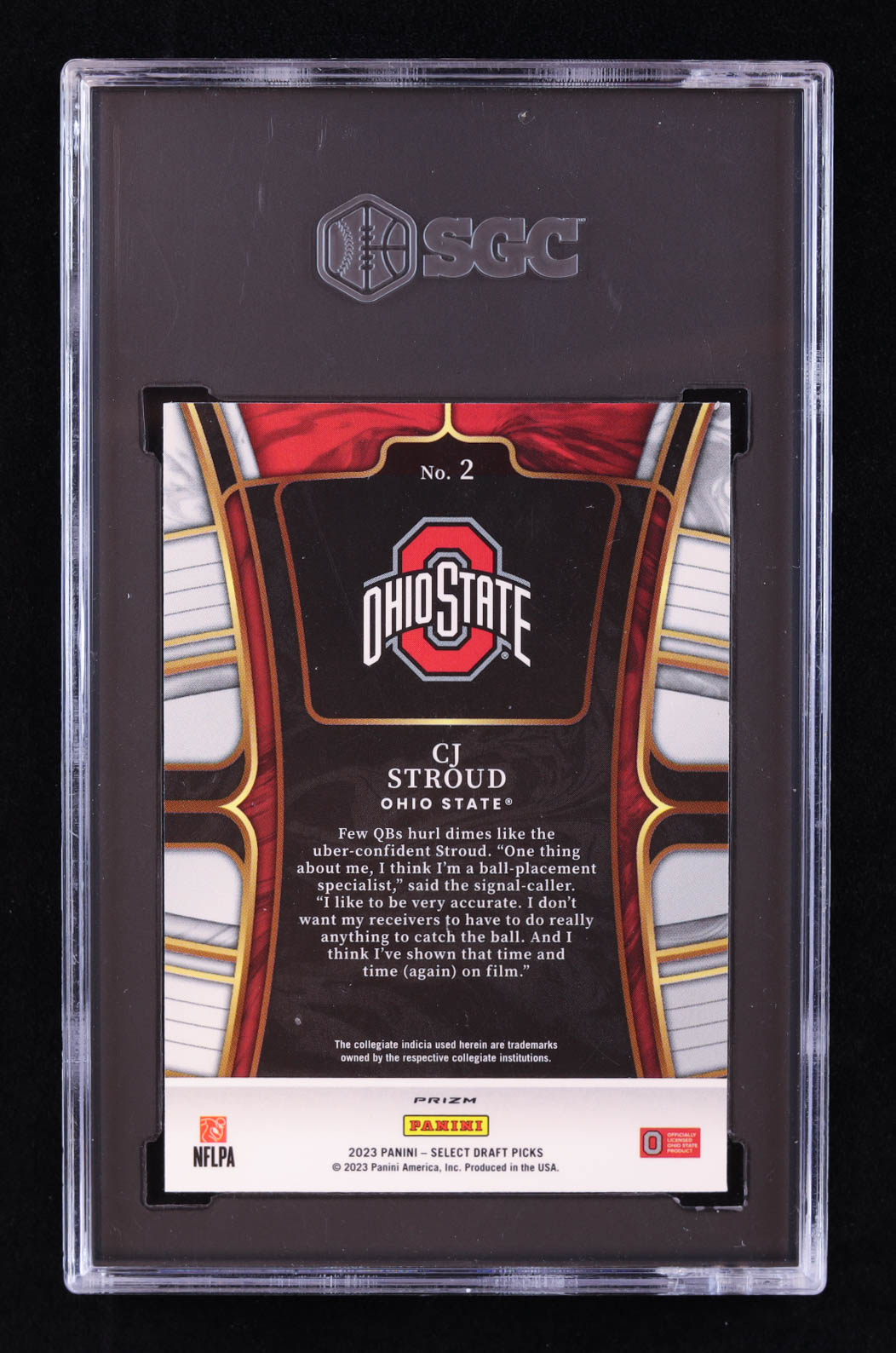 CJ Stroud 2023 Select Draft Picks Prizms Purple Lazer #2 RC (SGC 10)