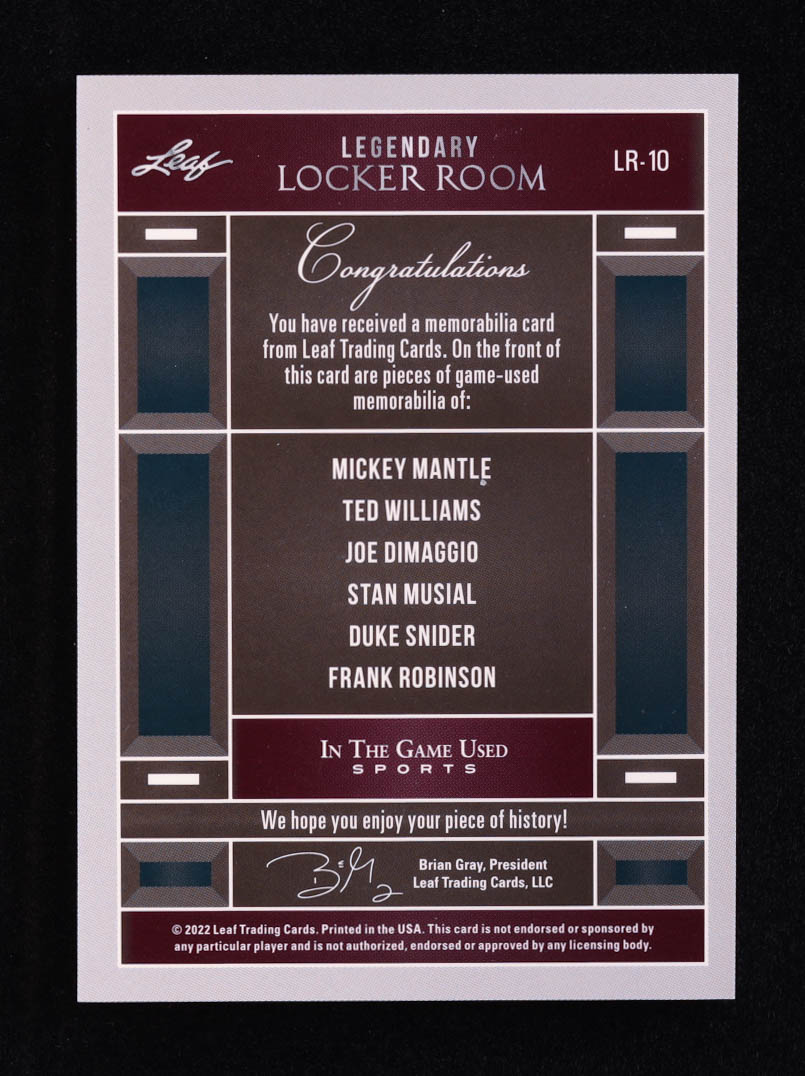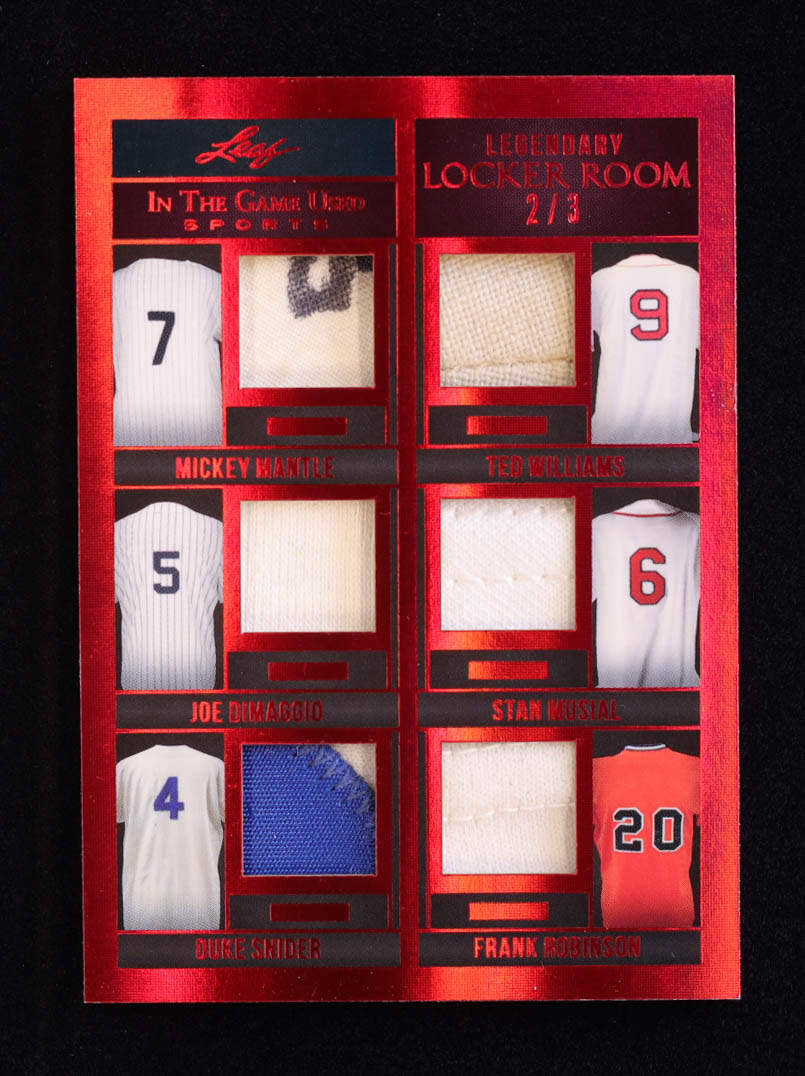 Mickey Mantle / Ted Williams / Joe DiMaggio / Stan Musial / Duke Snider / Frank Robinson 2022 ITG Used Sports Legendary Locker Room Memorabilia Red Spectrum #LR10 #2/3
