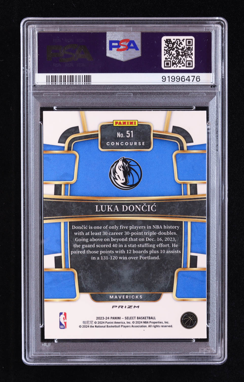 Luka Doncic 2023-24 Select Prizms Blue Cracked Ice #51 (PSA 10)