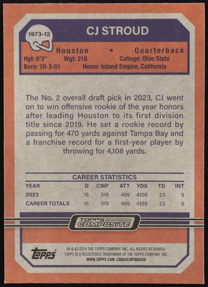 CJ Stroud 2023 Topps Composite '73 Topps #197312 RC