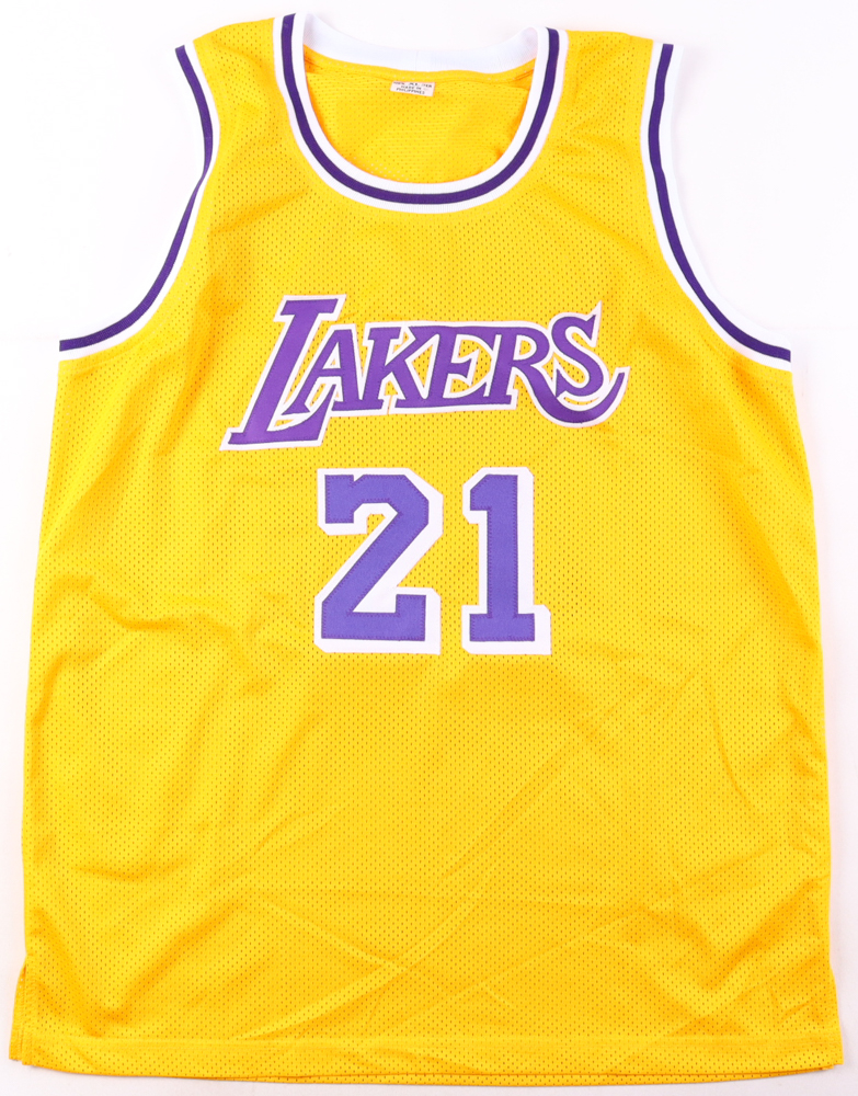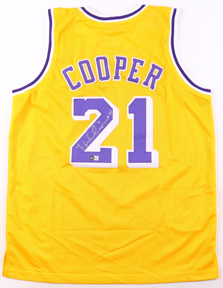 Custom jersey with everything sewn on, size XL. Hand-signed by Michael Cooper.