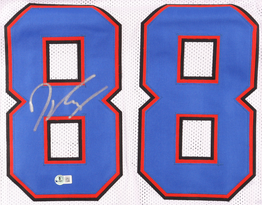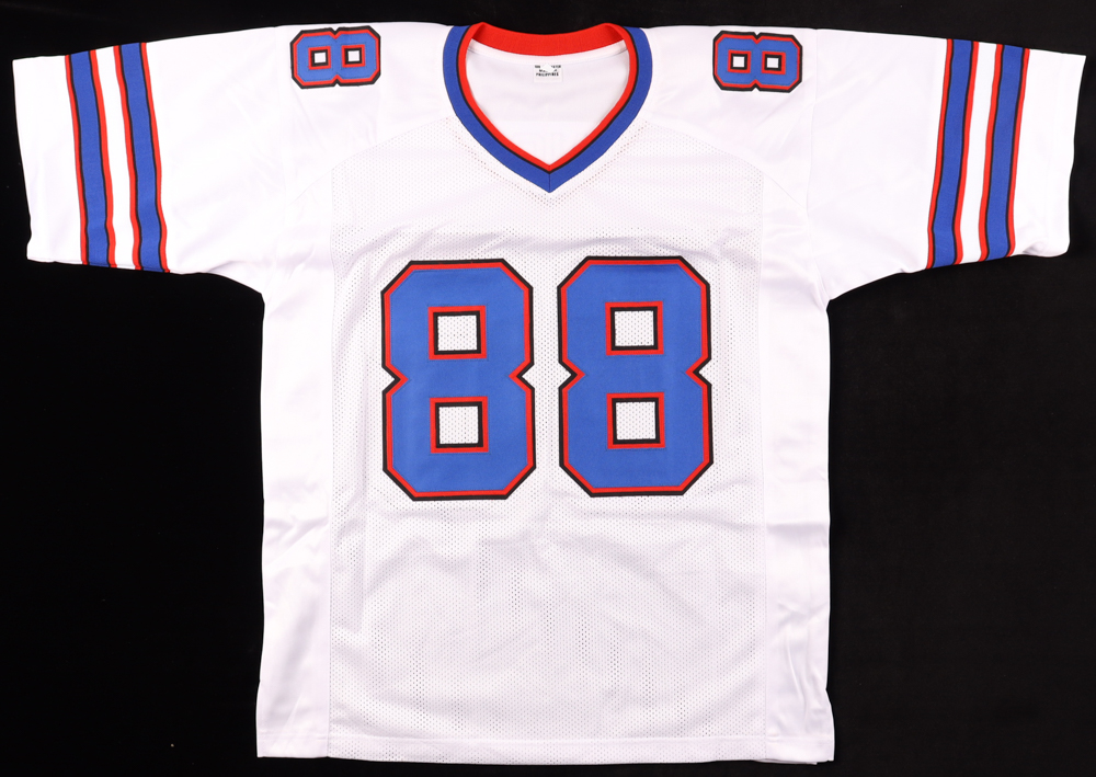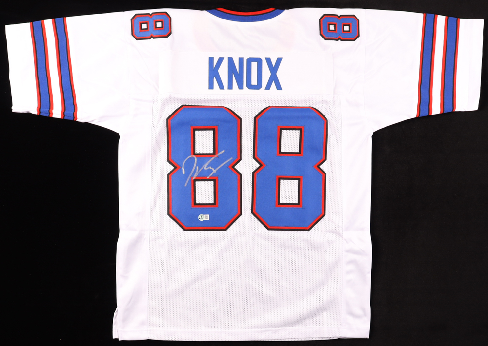 Custom jersey with everything sewn on, size XL. Hand-signed by Dawson Knox.