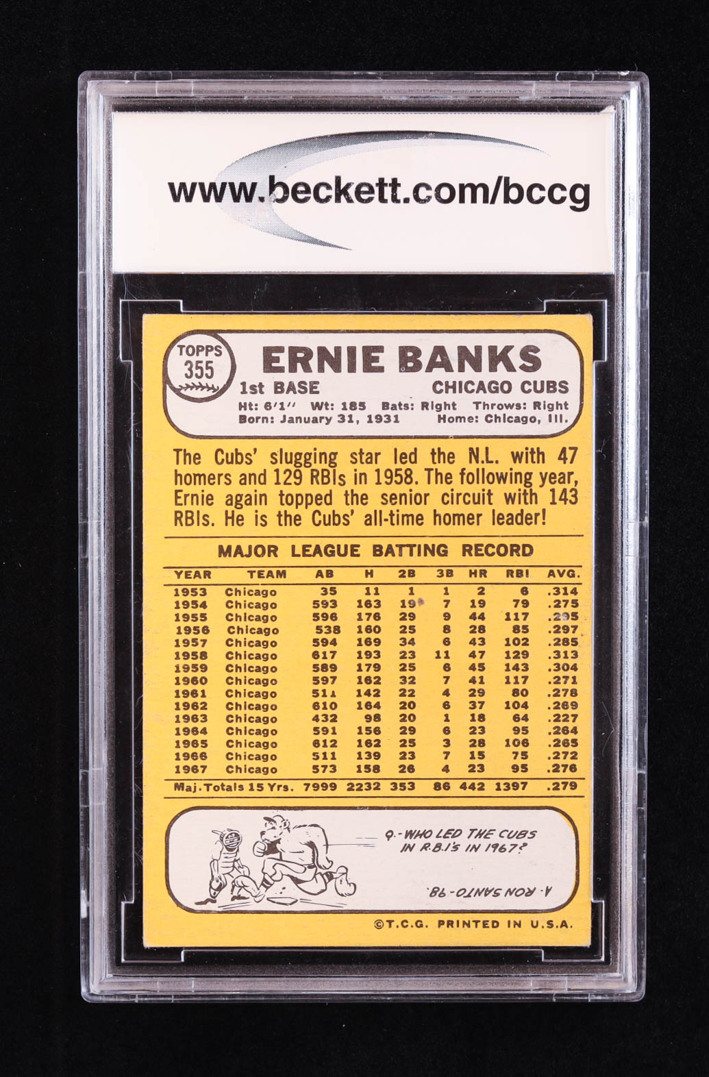 Ernie Banks 1968 Topps #355 (BCCG 8)