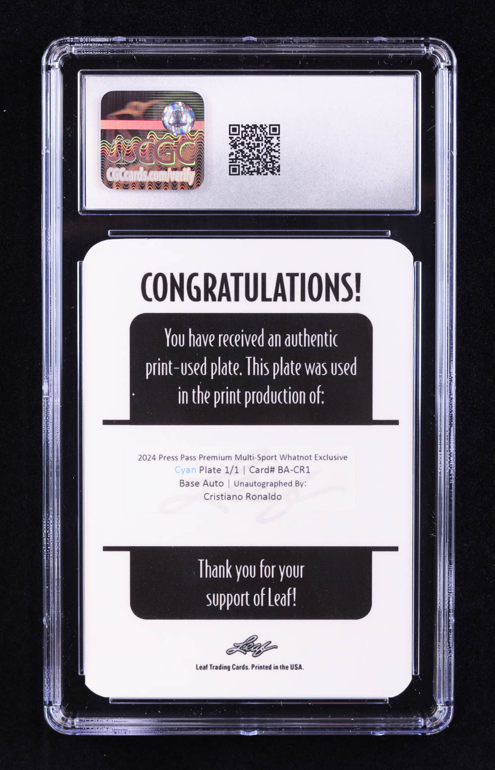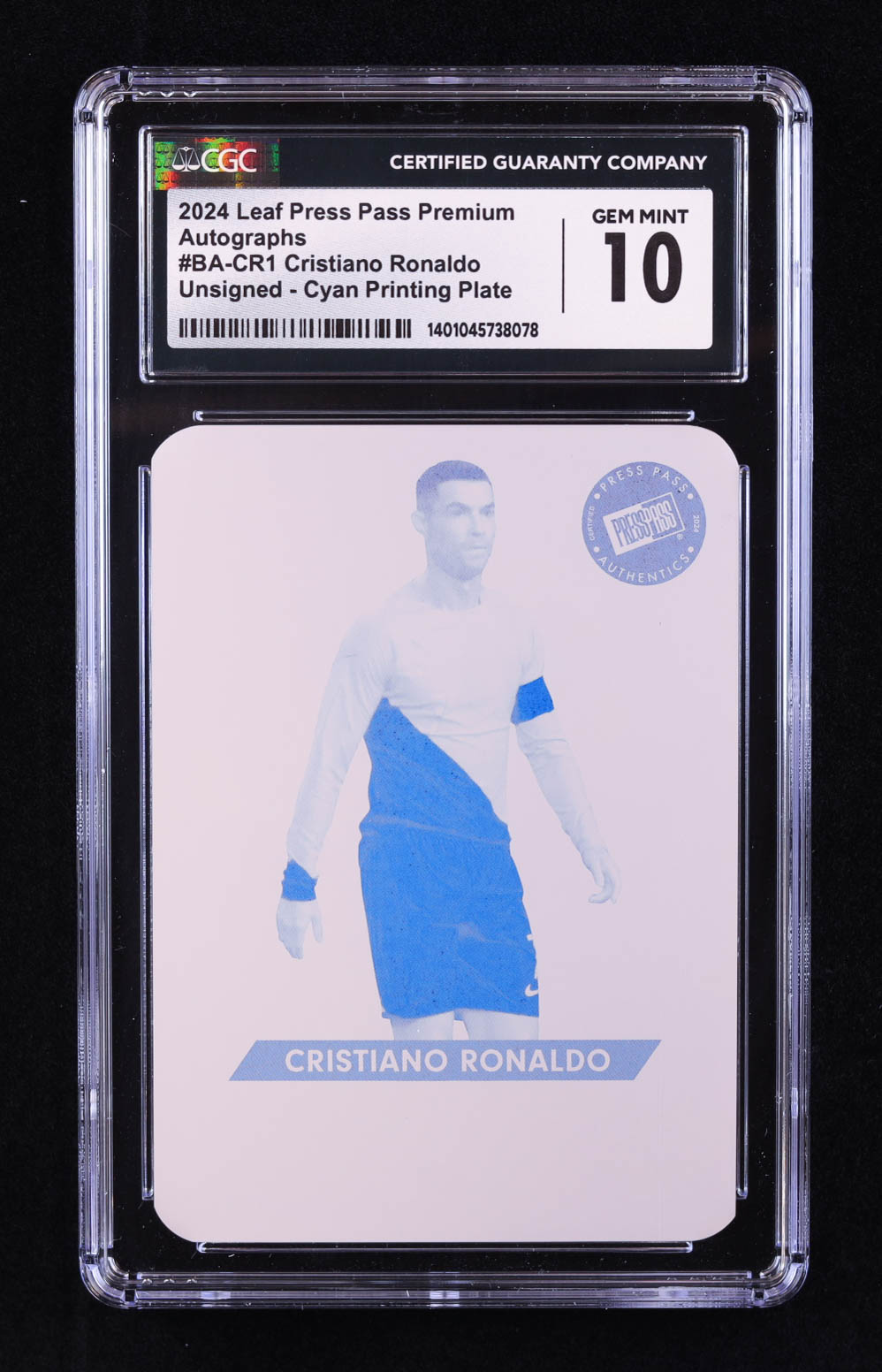 Cristiano Ronaldo 2024 Leaf Press Pass Premium Autographs Unsigned Printing Plates Cyan #BACR1 #1/1 (CGC 10)