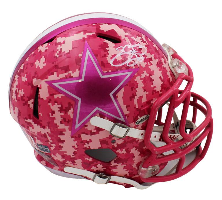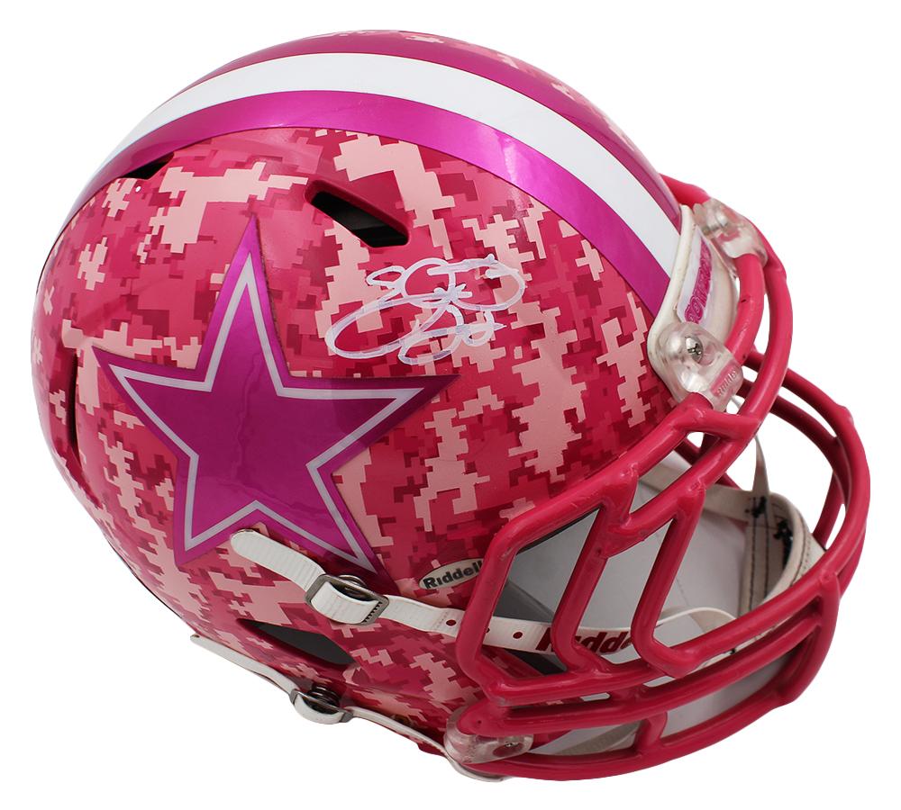 Riddell Dallas Cowboys full-size authentic on-field pink carbon fiber custom alternate speed helmet. Hand-signed by Emmitt Smith (HOF).
