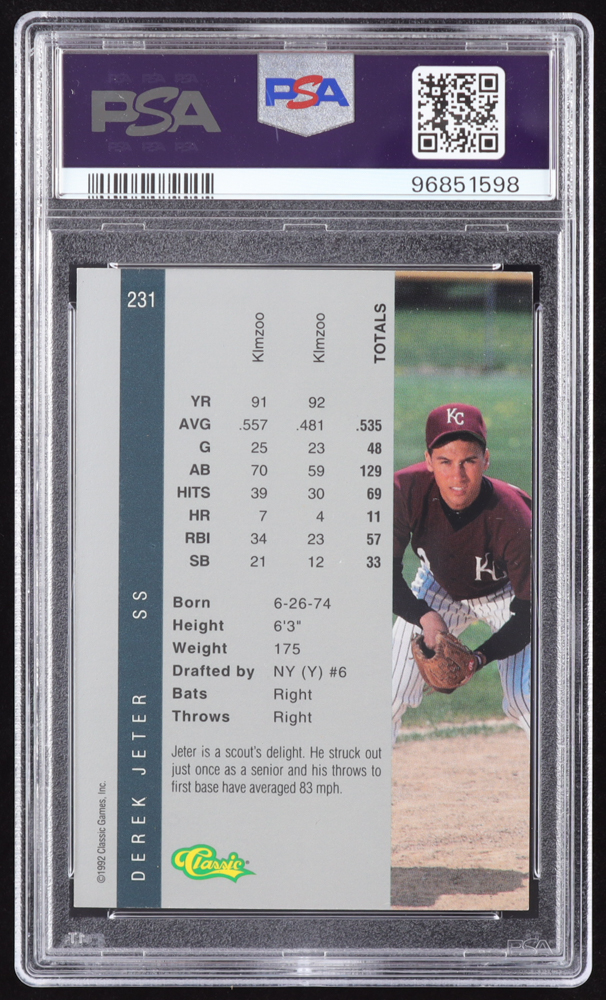 Derek Jeter 1992 Classic Four Sport #231 RC (PSA 8)