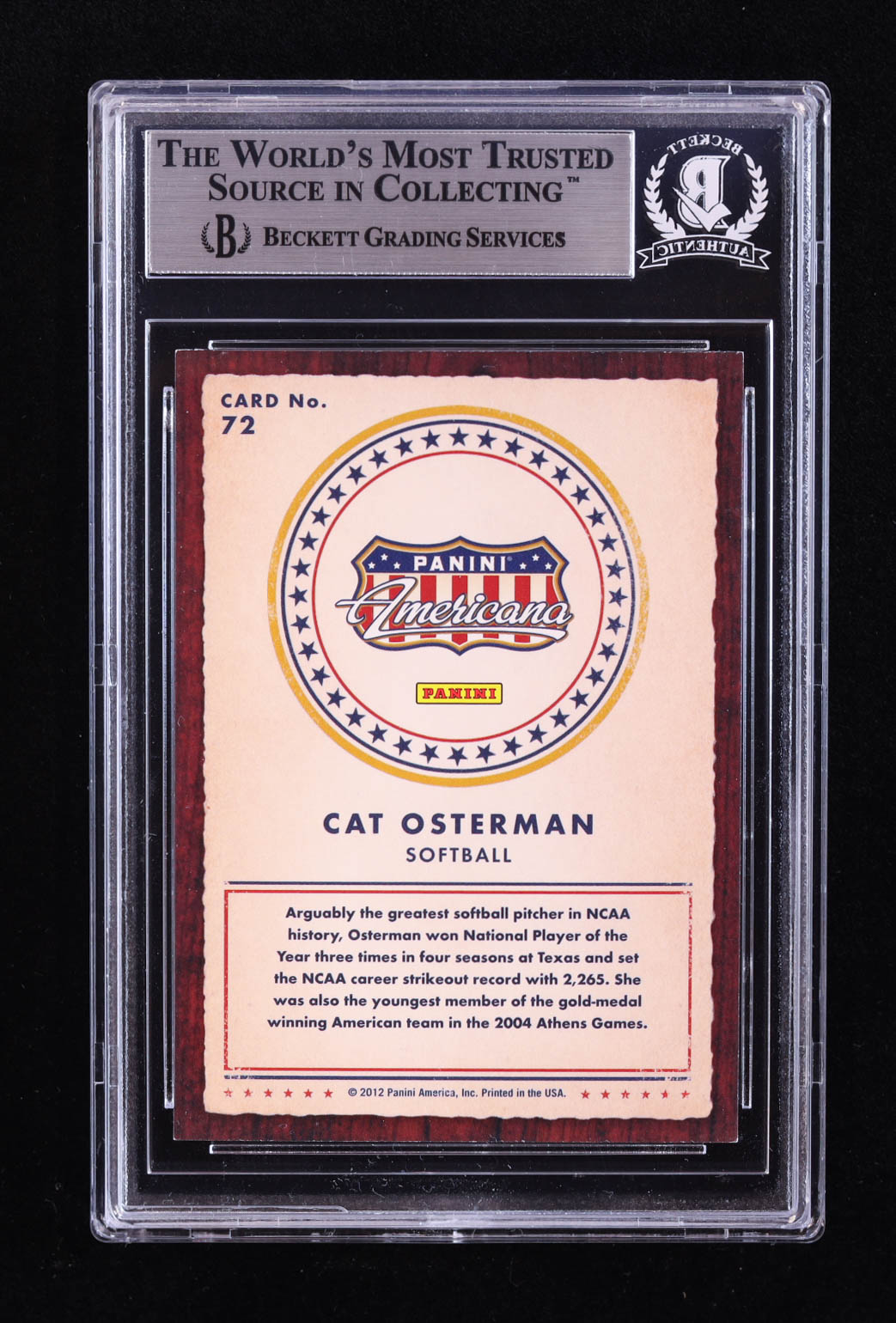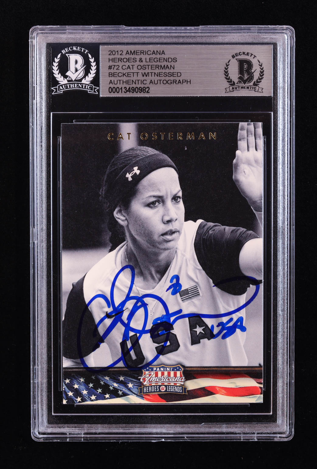 Cat Osterman Signed 2012 Americana Heroes and Legends #72 Inscribed "USA" (BGS)