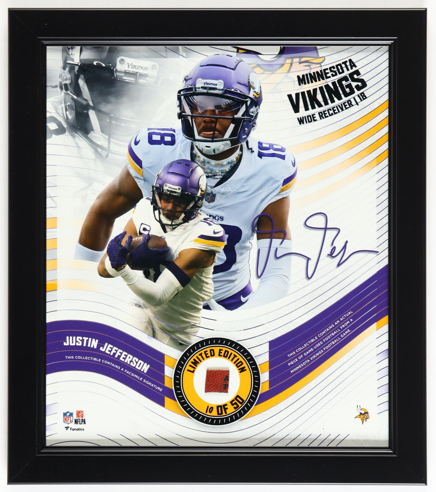 Justin Jefferson LE Vikings Custom Framed Photo Display with Game-Used Football Piece (Fanatics)