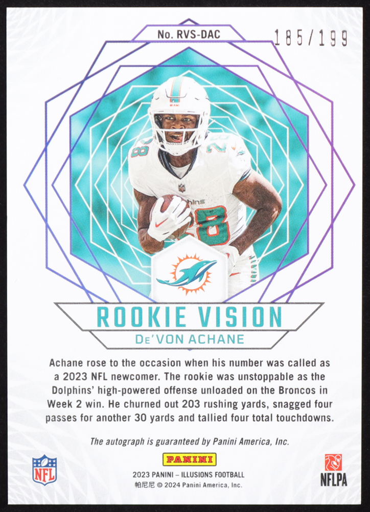 De'Von Achane 2023 Panini Illusions Rookie Vision Signatures #7 RC #185/199