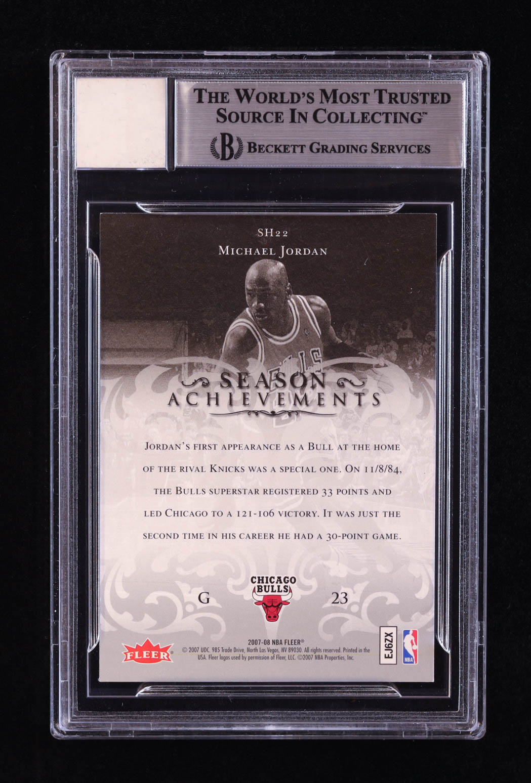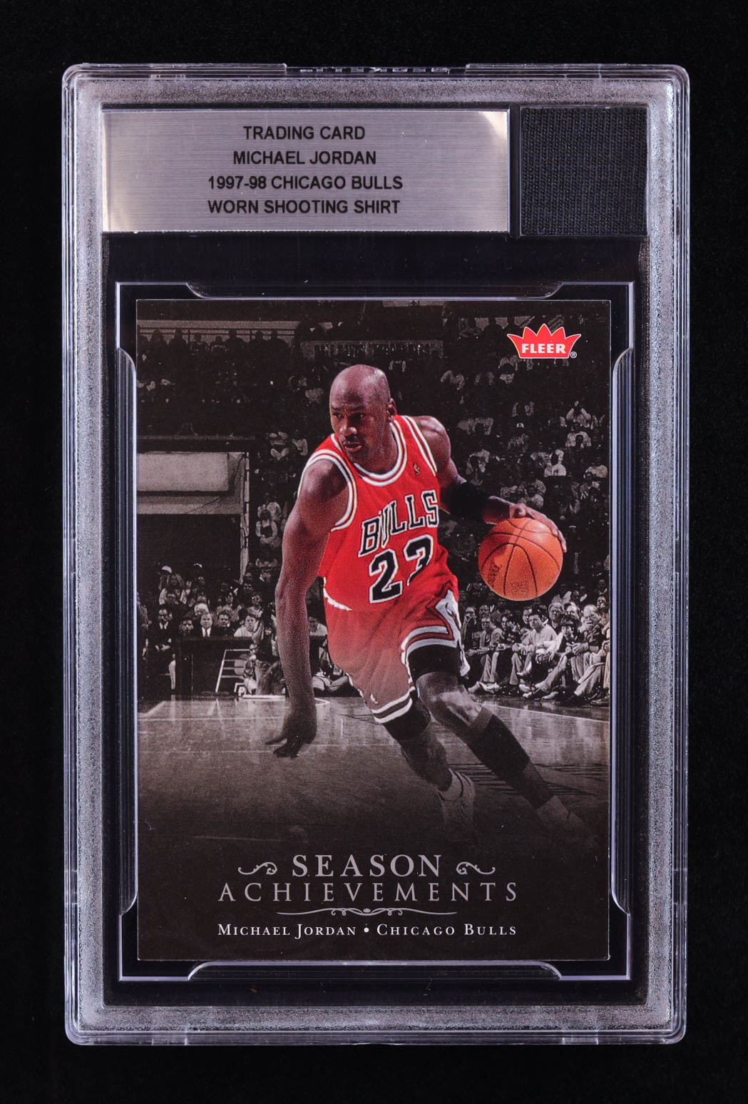 Michael Jordan 2007 Fleer Michael Jordan Season Achievements #SH22 with Worn Shooting Shirt Piece (BGS)