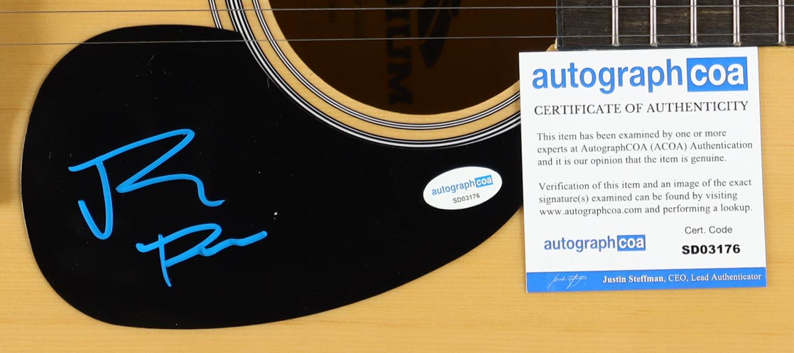 Full-Size Acoustic Guitar measures approximately 38" in length and has been hand-signed on the pick-guard by Jelly Roll.