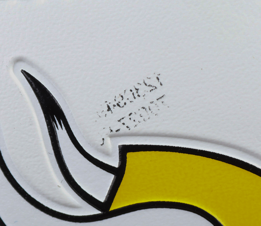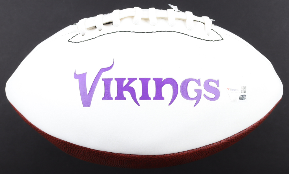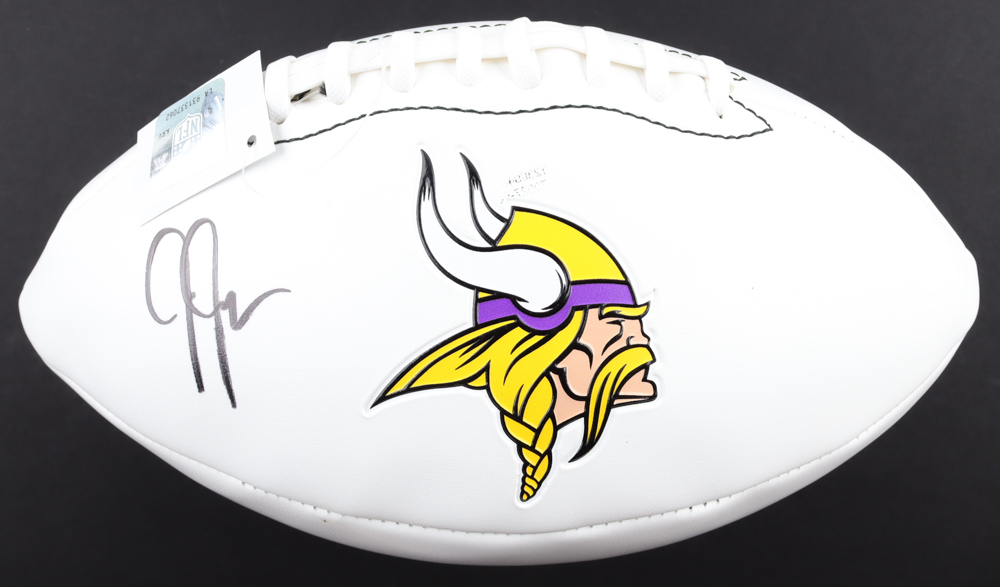 Minnesota Vikings logo football has been hand-signed by Justin Jefferson. Please note, the football has very minor staining.