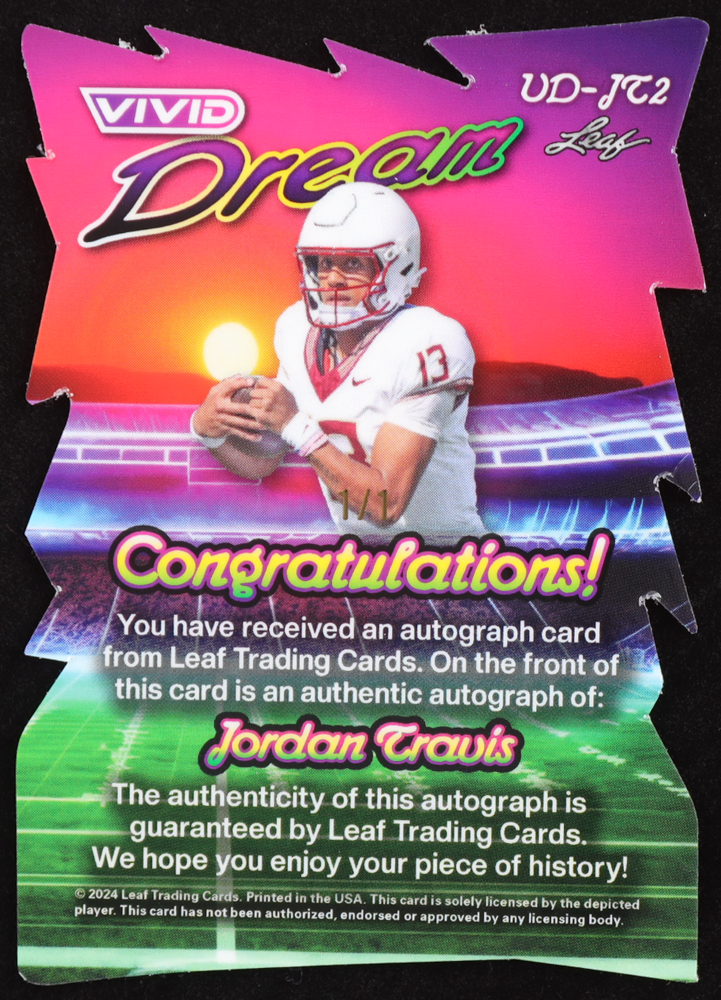 Jordan Travis 2024 Leaf Vivid Dream Rainbow Cracked Ice Die Cut #VDJT2 RC #1/1