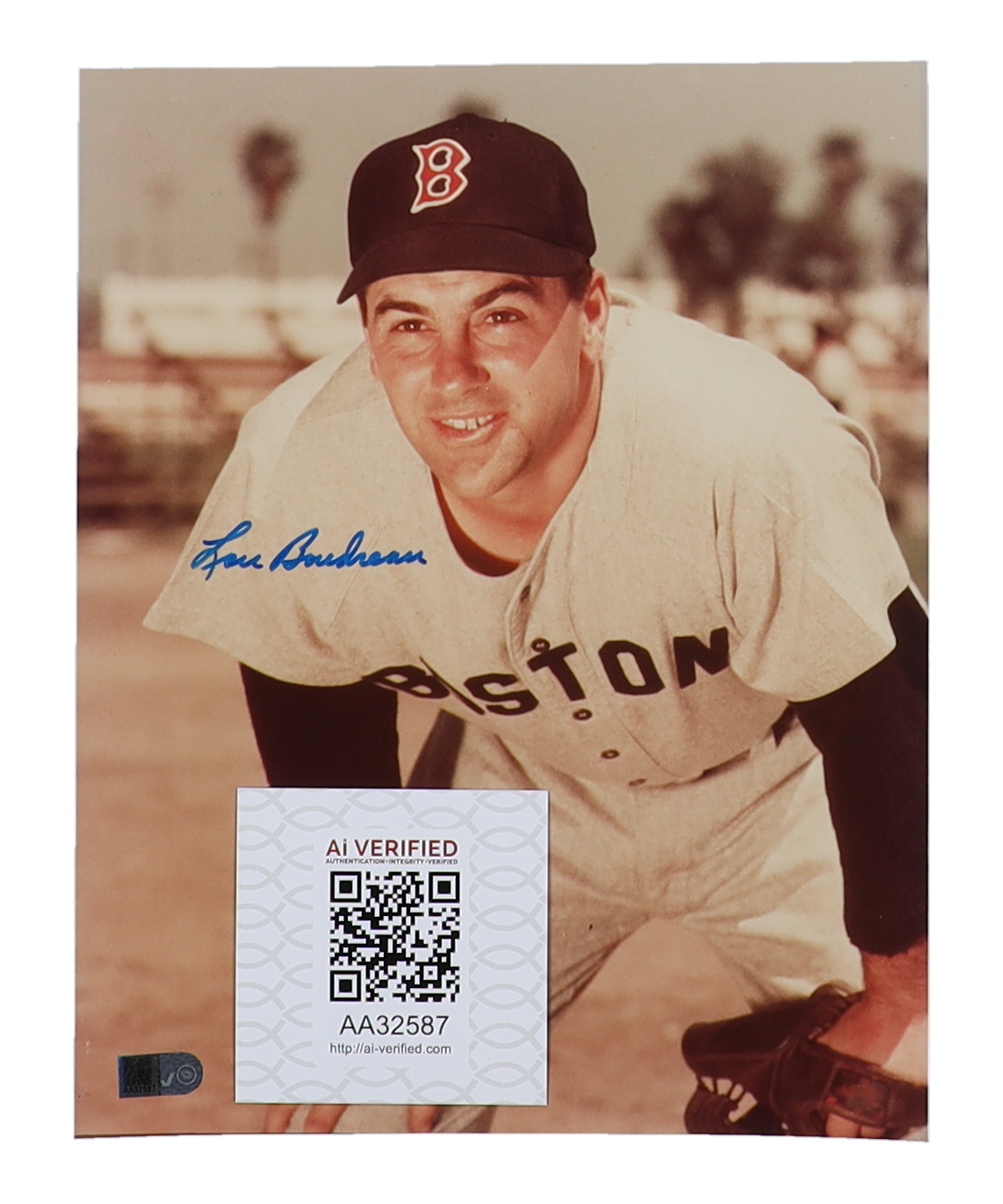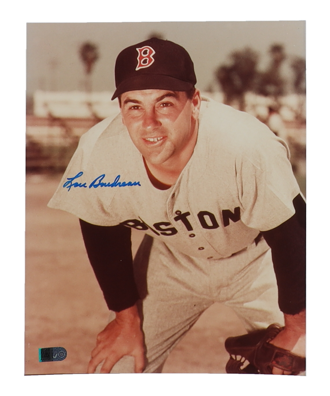 Photo measures 8" x 10" in size. Hand-signed by Lou Boudreau (D. 2001, Boston Red Sox, HOF).