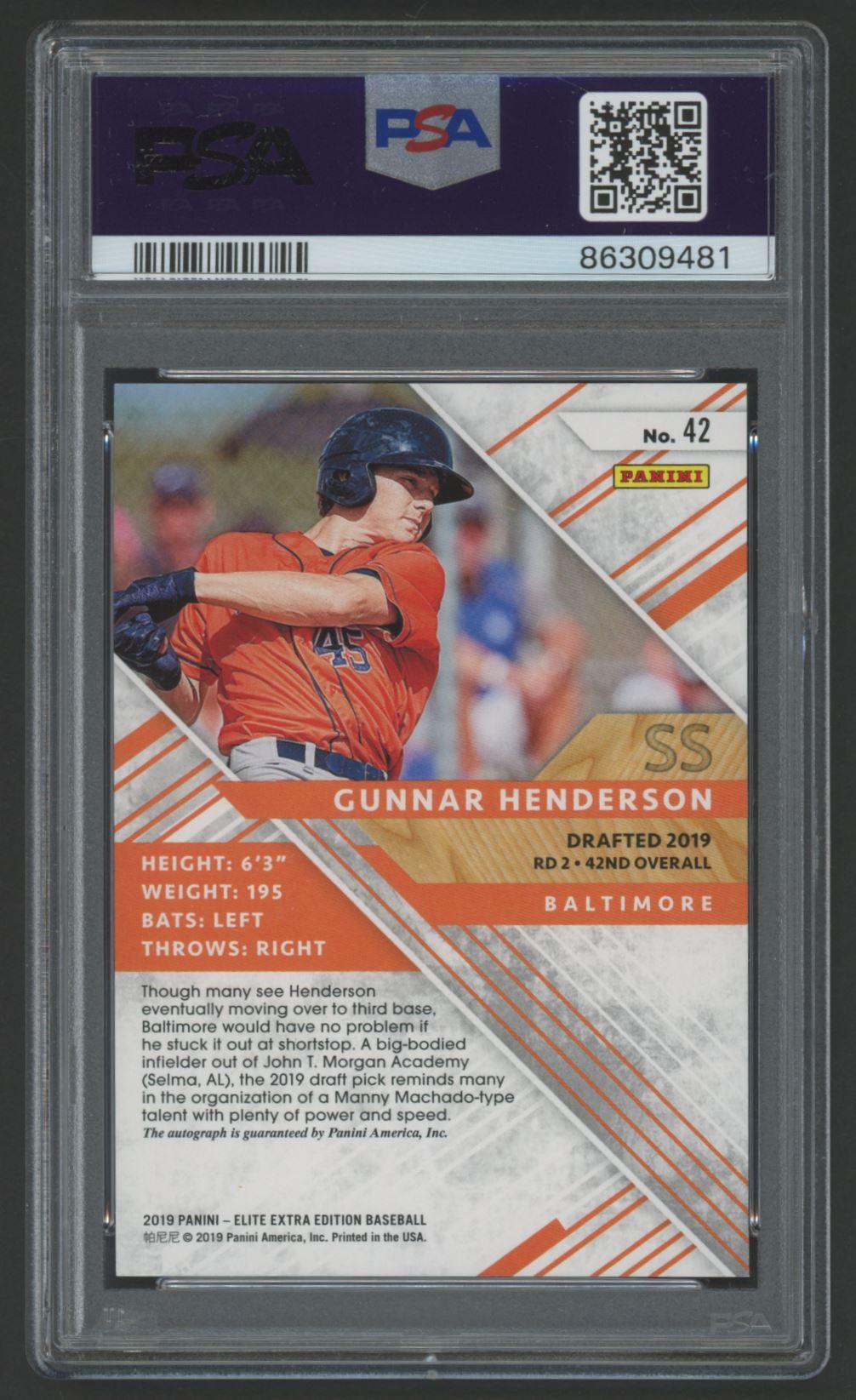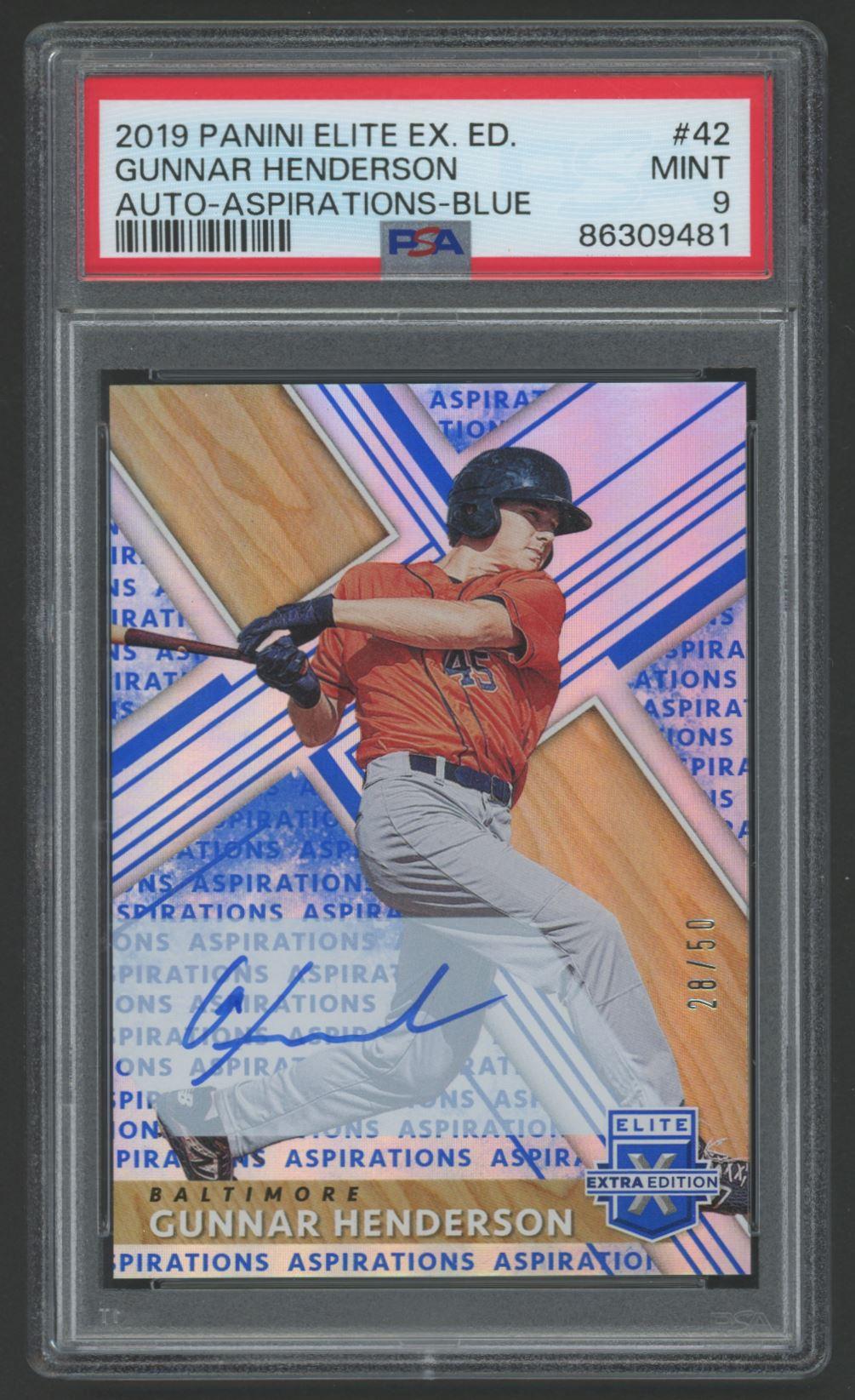 Gunnar Henderson 2019 Elite Extra Editions Aspirations Blue Autographs #42 #28/50 (PSA 9)