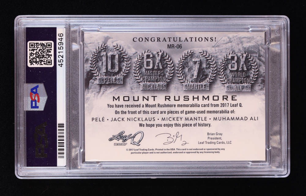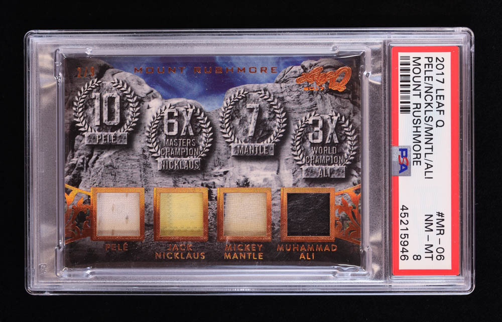 Pele / Jack Nicklaus / Mickey Mantle / Muhammad Ali 2017 Leaf Q Mount Rushmore Memorabilia Bronze #MR06 #2/9 (PSA 8)