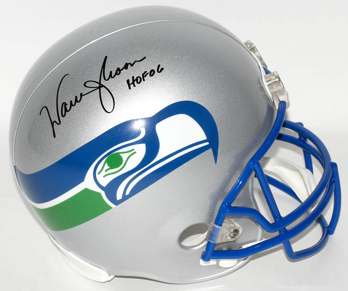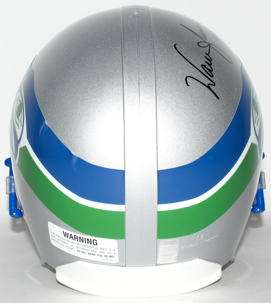 Seattle Seahawks full-size replica helmet. Hand-signed and inscribed in black felt-tip pen by Warren Moon (Oilers, HOF).