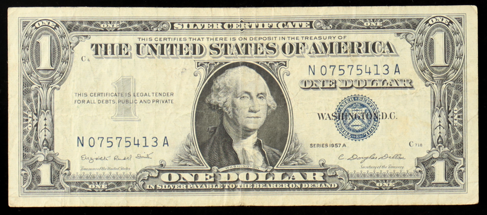 1957-A U.S. $1 One Dollar Silver Certificate - Blue Seal