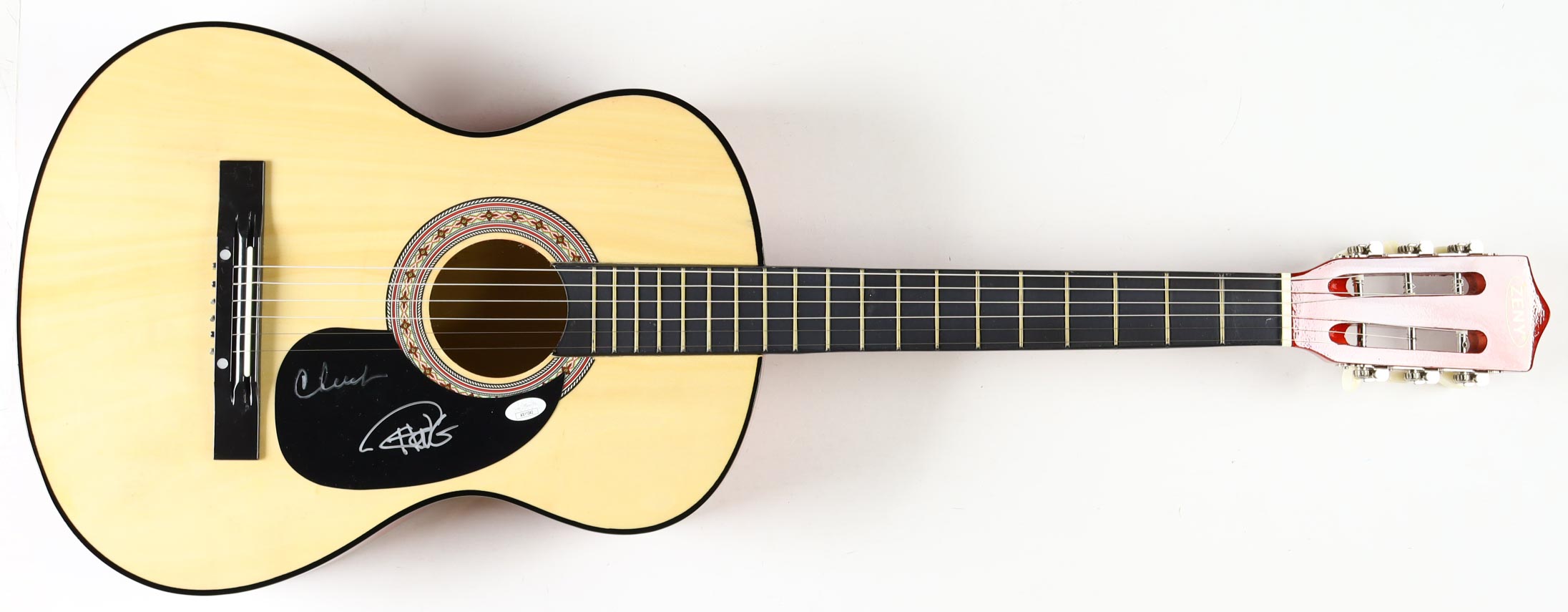 Zeny Acoustic Guitar measures approximately 38" in length and has been hand-signed on the pick-guard by Cheech Marin and Tommy Chong.