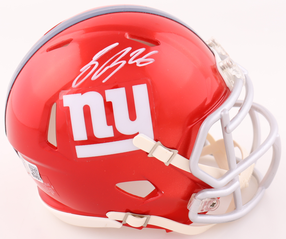 Riddel New York Giants Flash Alternate Speed Mini Helmet. Hand-signed by Saquon Barkley.