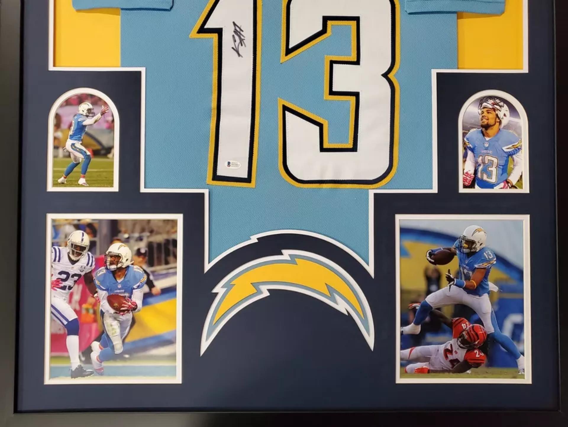 Custom frame measures 34" x 42" in size and features a jersey that has been hand-signed by Keenan Allen.