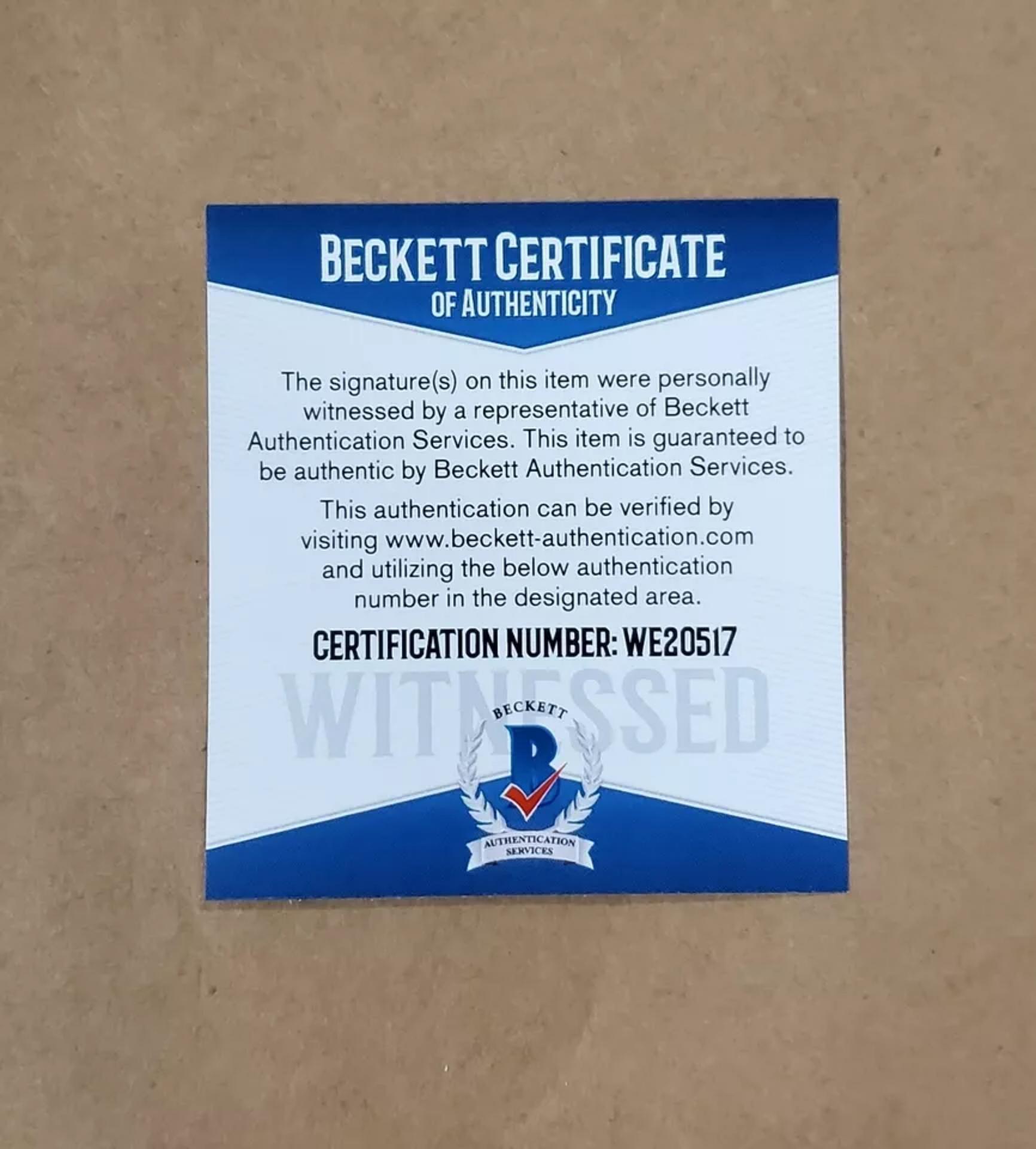 The autograph includes an official Beckett Authentication Services serially-numbered hologram and matching COA for authenticity purposes. The signing of this item was witnessed by Beckett.
