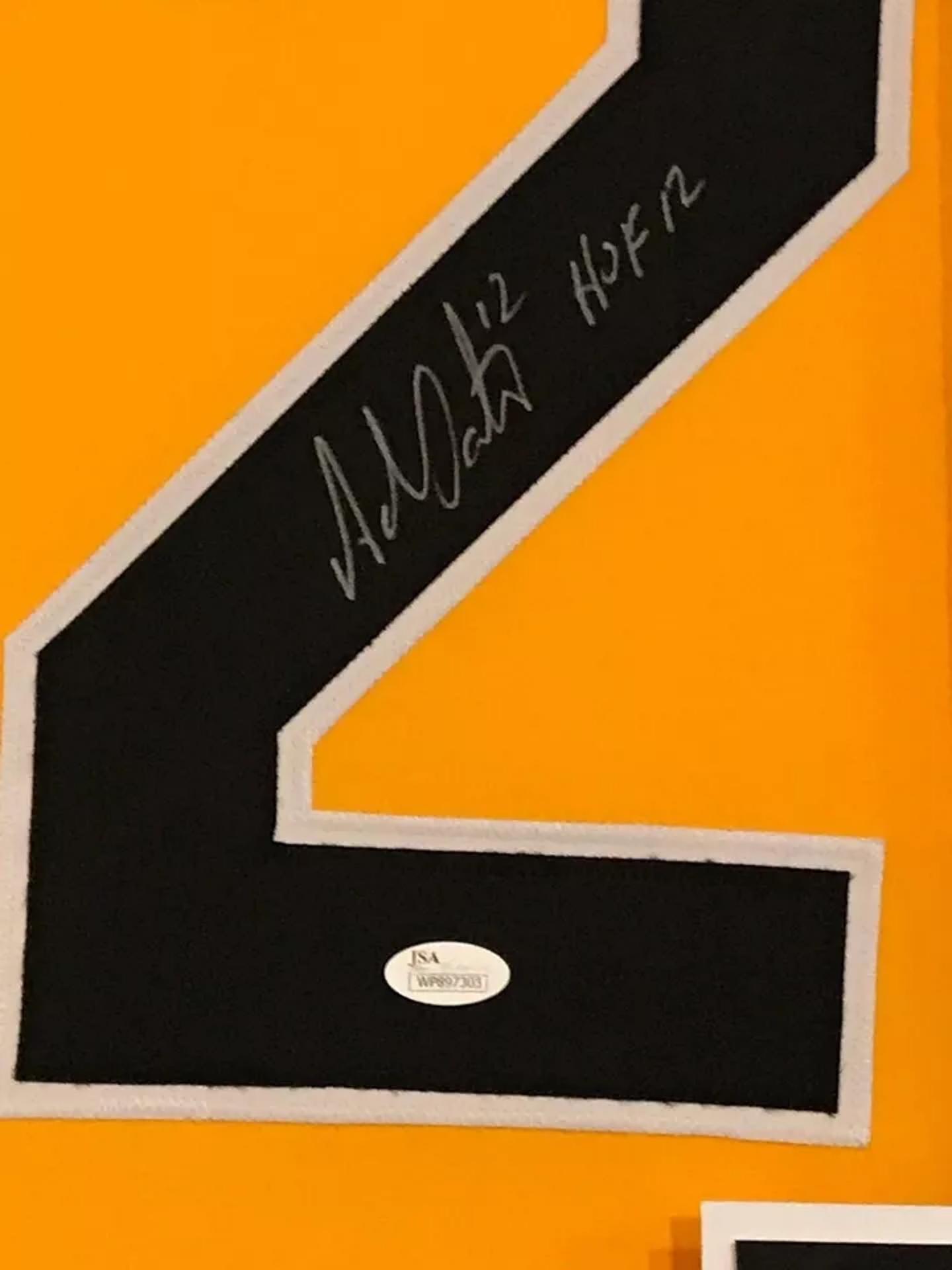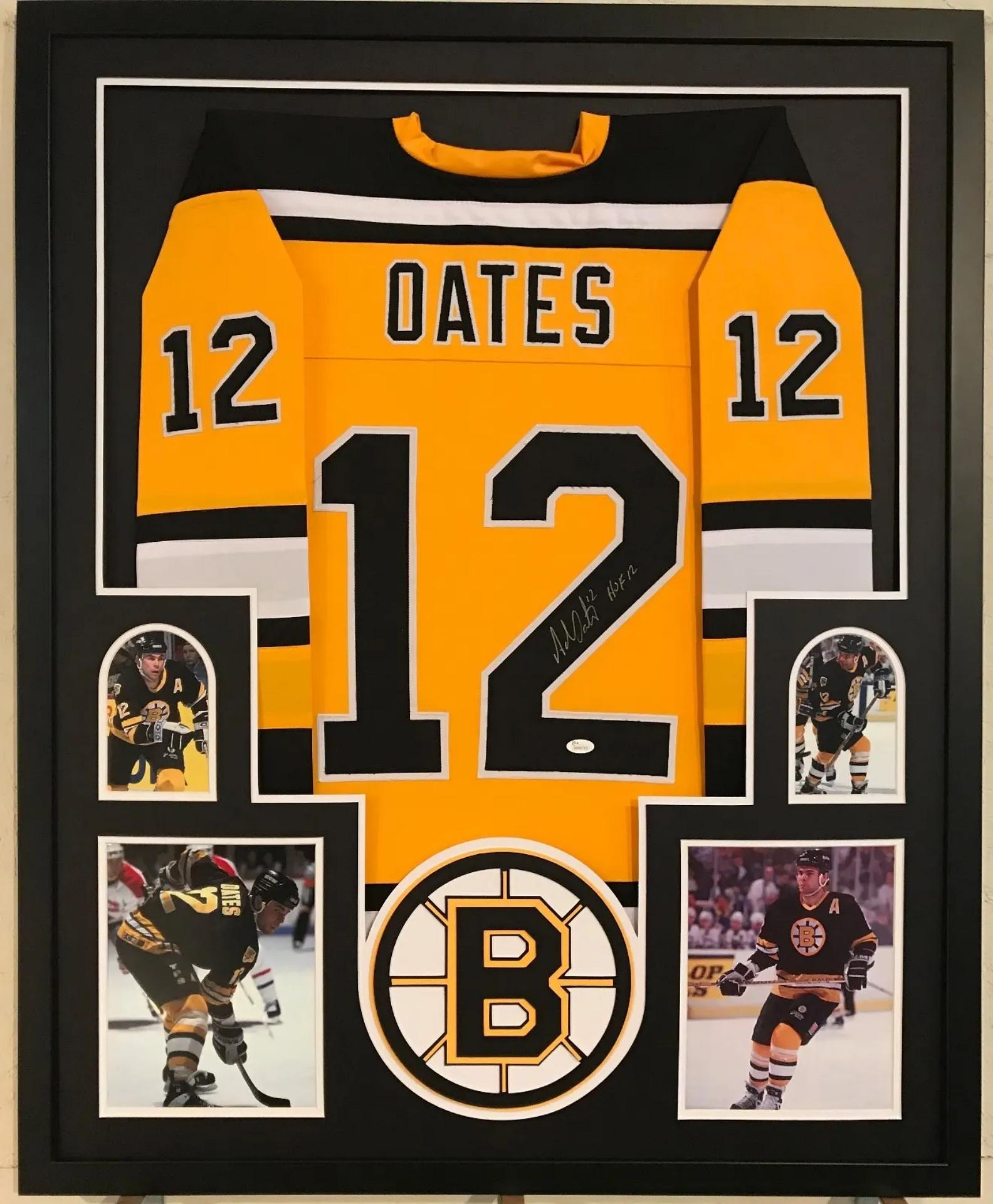 Custom frame measures 34" x 42" in size and features a jersey that has been hand-signed and inscribed by Adam Oates (HOF).