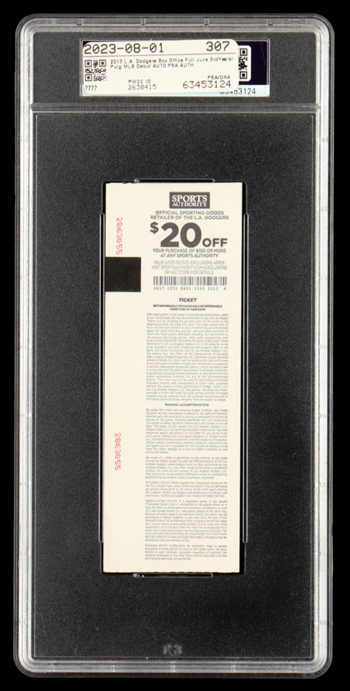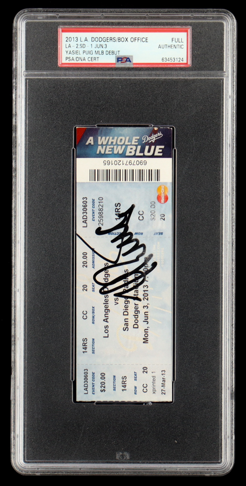 Yasiel Puig Signed Original MLB Debut Ticket (PSA)
