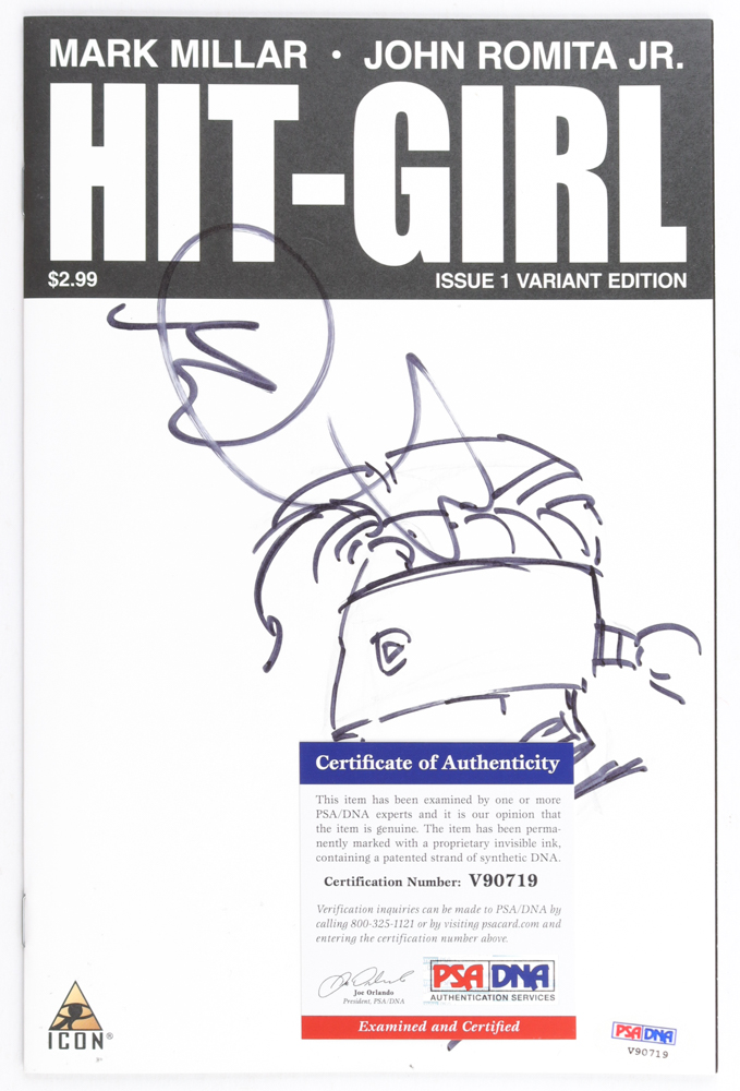 Chloe Moretz & John Romita Jr. Signed 2012 "Hit-Girl" Issue #1 Blank Variant Cover Icon Comic Book Inscribed "'13" with "Hit-Girl" Sketch (PSA)
