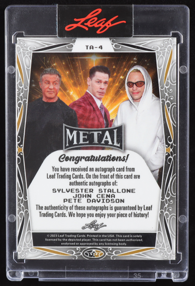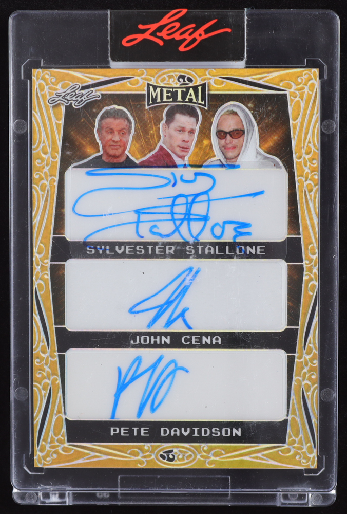 Sylvester Stallone / John Cena / Pete Davidson 2023 Leaf Metal Triple Autographs Gold Spectrum #TA4 #1/1