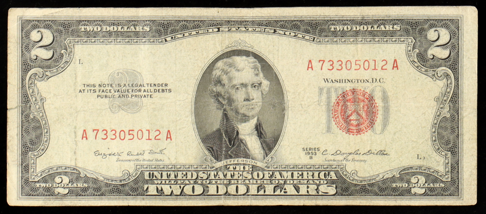1953-B U.S. $2 Two Dollars Legal Tender Note - Red Seal