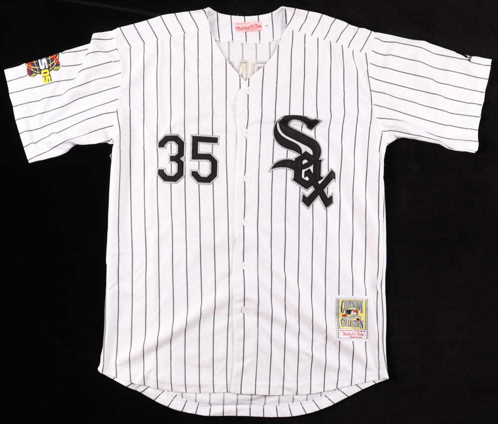 Mitchell & Ness jersey with everything sewn on, size L. Hand-signed and inscribed by Frank Thomas (HOF).