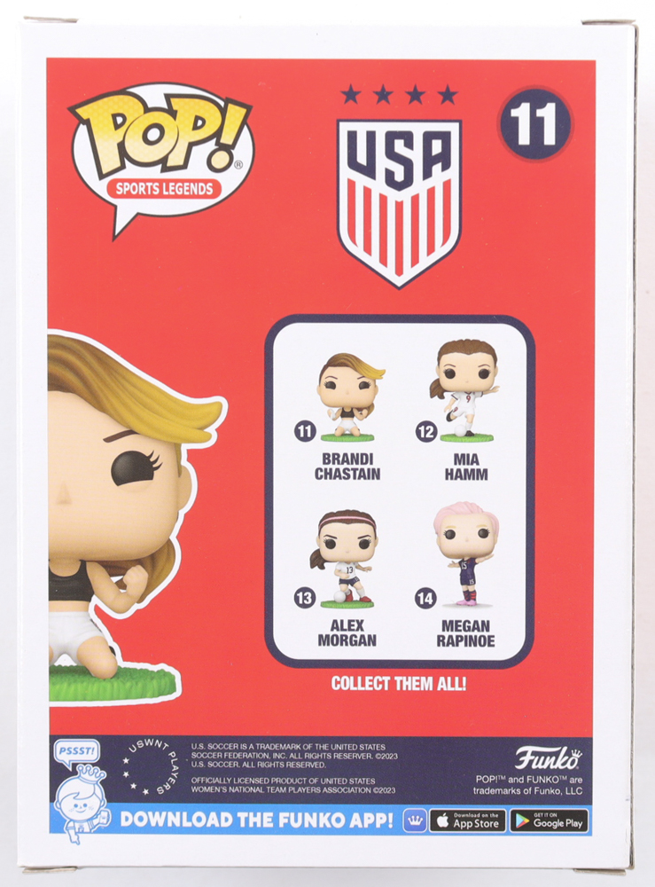 Funko Pop! vinyl figure that measures approximately 4" tall in size and has been hand-signed and inscribed by Brandi Chastain (HOF).