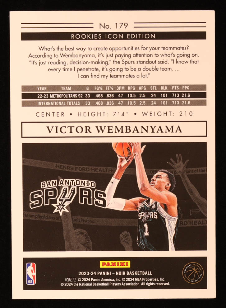 Victor Wembanyama 2023-24 Panini Noir Rookies Icon Edition Holo Silver #179 RC #18/49