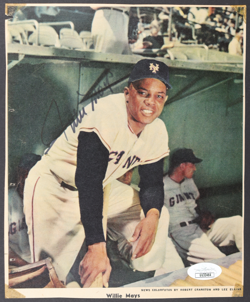 Cut measures 7" x 8.5" in size. Hand-signed by Willie Mays (D. 2024, San Francisco Giants, HOF).