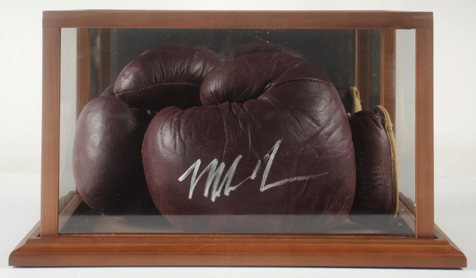 Mike Tyson Signed Vintage 1960 Spalding Burgundy Boxing Glove In Wooden Glass Display Case (Tyson)