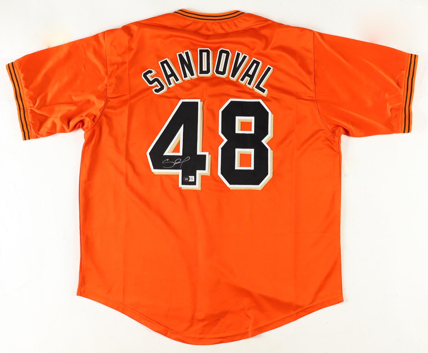 Custom jersey with everything sewn on, size XL. Hand-signed by Pablo Sandoval.