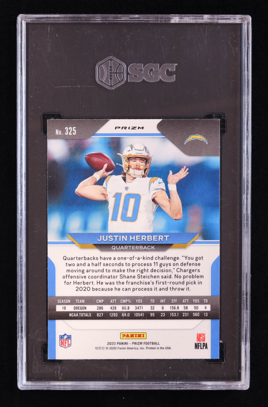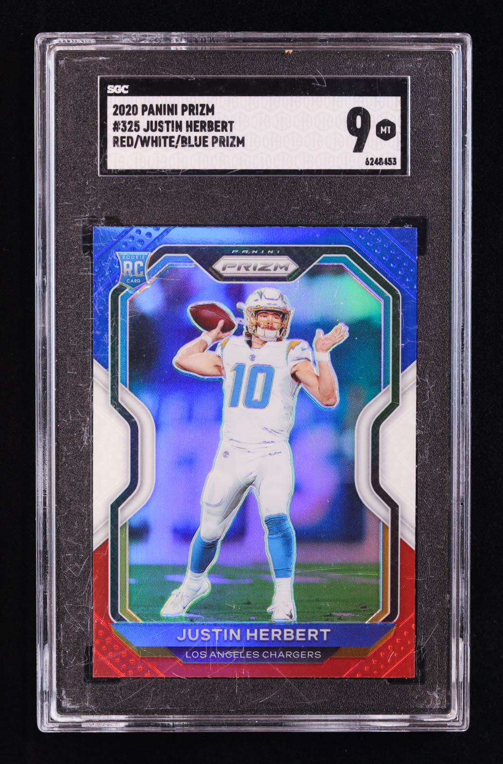 Justin Herbert 2020 Panini Prizm Prizms Red White and Blue #325 RC (SGC 9)